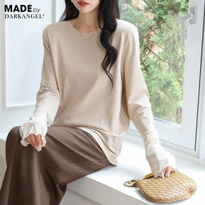 シアー素材とカットソー素材のコントラストが1枚で叶う、