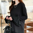 1. 可愛さと使い勝手を両立したポエットスリーブ ポエットスリーブの魅力 フリル袖が特徴のポエットスリーブデザインで、 華やかさをプラスしつつ甘すぎない適度なボリューム感。 コーディネートにさりげなくアクセントを与えてくれます。 2. 暖かさと動きやすさを両立 裏起毛素材 身頃部分は暖かい裏起毛生地で、 肌触りが柔らかく、寒い季節でも快適に過ごせます。 軽く、動きやすさも確保されており、日常使いに最適です。 3. レイヤードスタイルでおしゃれに インナーとしても、1枚での着用もOK シャツ生地のフリル袖部分と裏起毛の身頃部分が絶妙に組み合わさっているため、 レイヤードスタイルを簡単に楽しめます。 普段のコーディネートを新鮮に見せるおしゃれアイテム。 5. 自宅でケアできる便利さ 簡単なお手入れ 自宅で手軽にお洗濯が可能なので、 気軽に日常使いができます。忙しい日々に嬉しいポイントです。 |