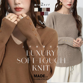 袖ボタンリブニット