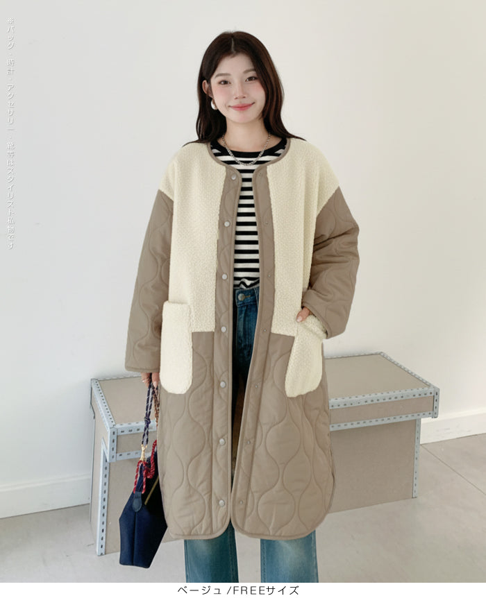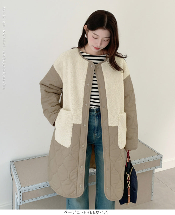 ボアキルティングコート