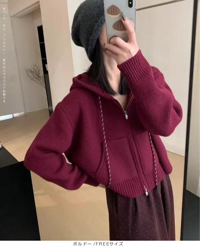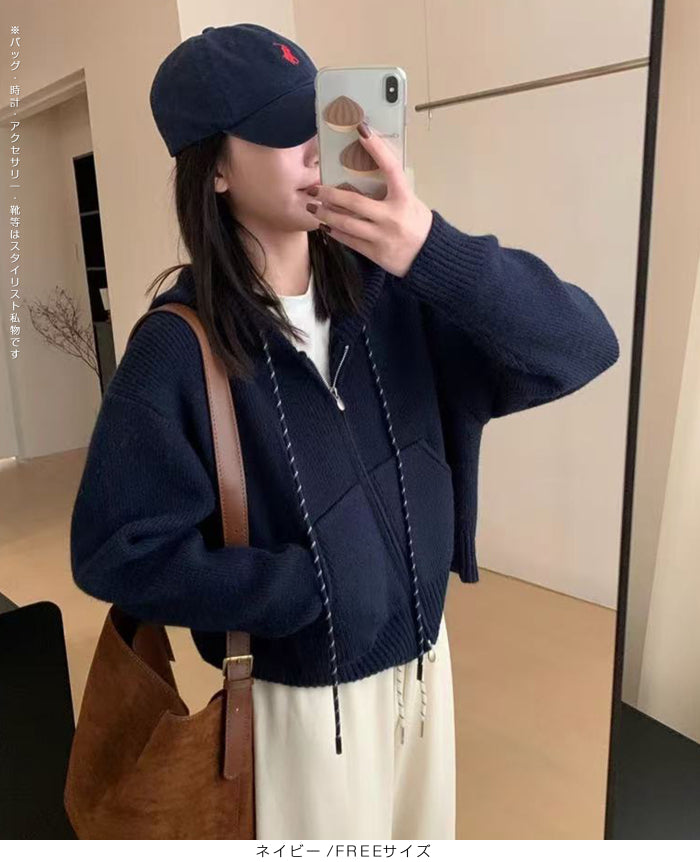 フード付きジップアップショートカーディガン - FREEサイズ / D・グレー ...は取り寄せ中で入荷次第発送します。