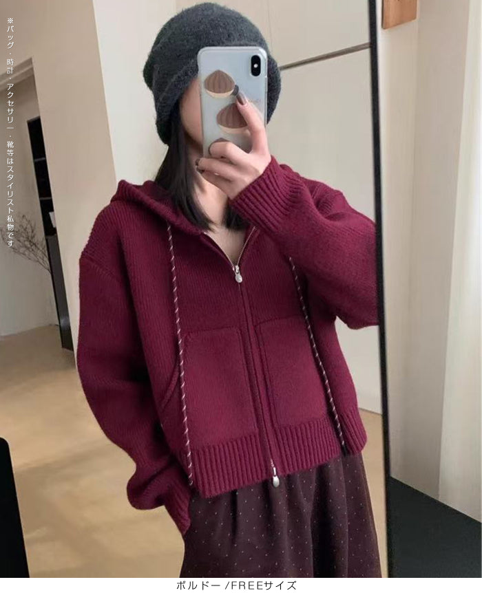 【フード付きジップアップショートカーディガン】 シンプルながらもトレンド感漂う、 フード付きジップアップショートカーディガン。 軽やかな着心地で秋から春先までロングシーズン活躍。 ベーシックカラーから華やかなボルドーまで豊富に揃い、 大人カジュアルなスタイルにぴったりのアイテムです。 《商品ポイント》 軽量で扱いやすいポリエステル素材 便利なフロントジップ仕様で着脱ラクラク 両サイドポケット付きで実用性◎ 裾と袖口はリブ仕様でフィット感あり ショート丈でバランス良くスタイルアップ 《デザイン・シルエット》 コンパクトなショート丈デザイン ゆったりとした肩幅で抜け感あるシルエット フード付きでカジュアル感と可愛さをプラス 無地でシンプルだから着回し力抜群 《コーディネート提案》 ジョガーパンツと合わせてスポーティミックス フレアスカートに合わせてフェミニンカジュアル デニムと合わせて定番の大人カジュアルコーデ ワンピースに羽織ってちょっとしたライトアウターにも 通勤・通学・旅行などデイリー使いにぴったり 《サイズ・カラーバリエーション》 サイズ:FREEサイズ カラー:アイボリー / ネイビー / ダークグレー / ボルドー 《素材・機能性》 素材:ポリエステル100% 伸縮性:あり 透け感:なし 厚み:中厚手(秋〜春に最適) |