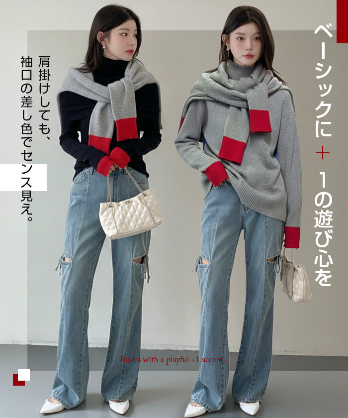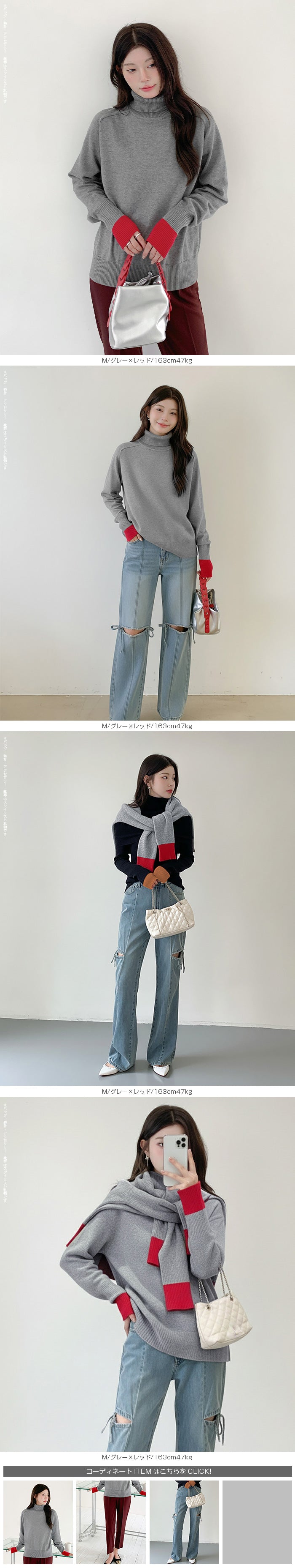 02color|袖口配色ニットセーター - Mサイズ / グレー×レッド ...は取り寄せ中で入荷次第発送します。