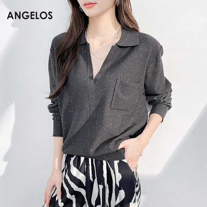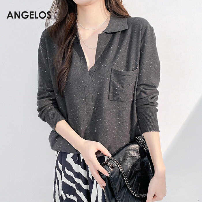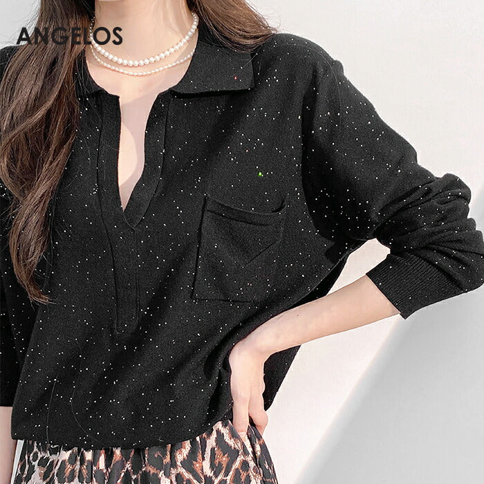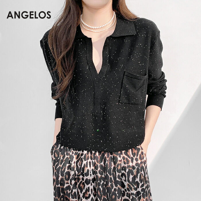 【スパンコールオープンカラーニット】 さらりとした柔らかなニット素材。 スパンコールを編み込んでいますが、 チクチク感を感じにくい肌触り。 肌寒さを感じる春の季節にぴったりの素材です。 |