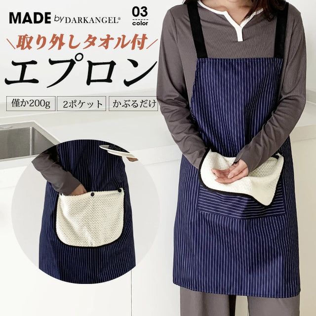 タオル付きエプロン - タオル付きエプロン(1セット) / ブラックストライプ ...は取り寄せ中で入荷次第発送します。