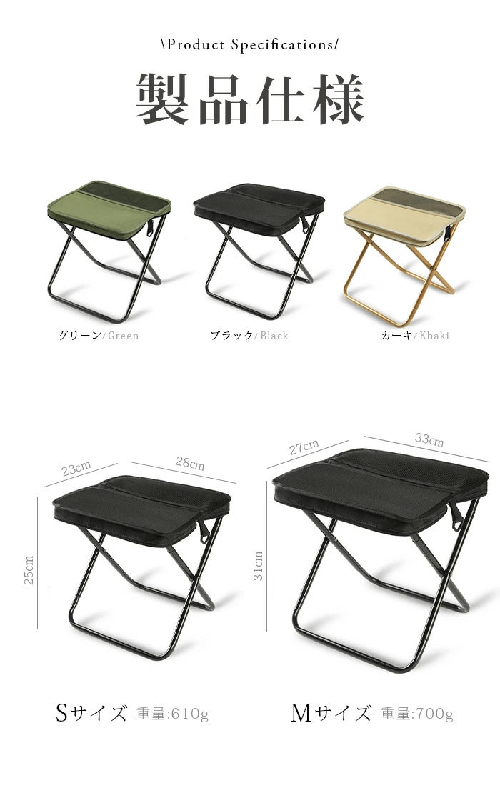 【 アウトドアチェア 折りたたみ コンパクト 軽量 耐荷重120kg 携帯スツール キャンプ 釣り ピクニック 運動会 】 耐荷重120kgの頑丈設計で、大人も子供も安心して座れる折りたたみチェア。 キャンプや釣り、ピクニック、花火大会、運動会など、屋外レジャーからイベント待機まで幅広く活躍します。 軽量で超コンパクトに折り畳めるため、バッグや収納袋にすっきり収まり、持ち運びもラクラク。 ショルダーストラップ付きで肩掛け・手提げの2WAY仕様、移動時も両手が空いて便利です。 炭素鋼フレームと厚手600Dオックスフォード生地を採用し、耐久性と安定感を実現。 地面が凸凹でもしっかり安定し、アウトドアや旅行先でも安心して使用できます。 座面と収納袋が一体化した新設計で、袋をなくす心配なし。 さらにサイドポケット付きでスマホや小物も収納可能。 折り畳みは3ステップで簡単、使いたい時にすぐ展開でき、片付けもスムーズ。 コンパクトながら快適な座り心地を実現し、長時間でも疲れにくい設計です。 アウトドアチェア、ポータブルスツール、ミニチェアとして多用途に使える一脚。 キャンプ、釣り、登山、撮影、花火大会、バーベキュー、フェスなど様々なシーンで大活躍します。 まさに「軽量・コンパクト・頑丈」を兼ね備えた携帯チェア。 アウトドアから日常の行列待ち、旅行や万博まで、どこでも座れる便利な一台です。 |