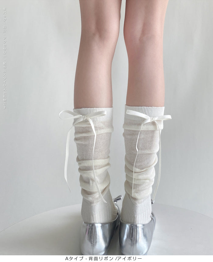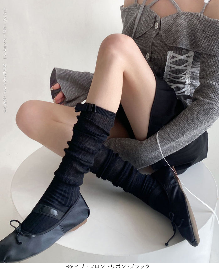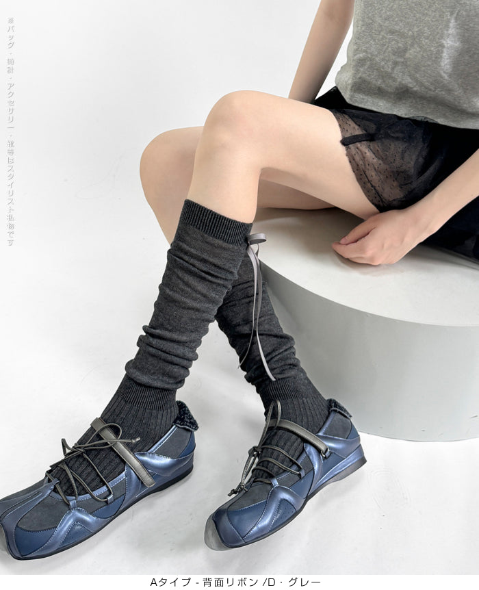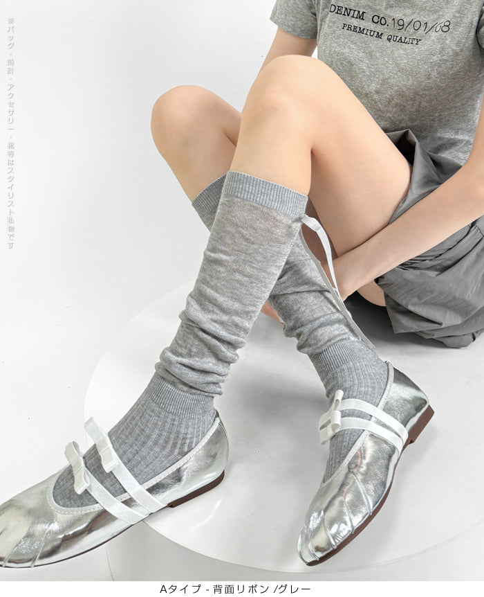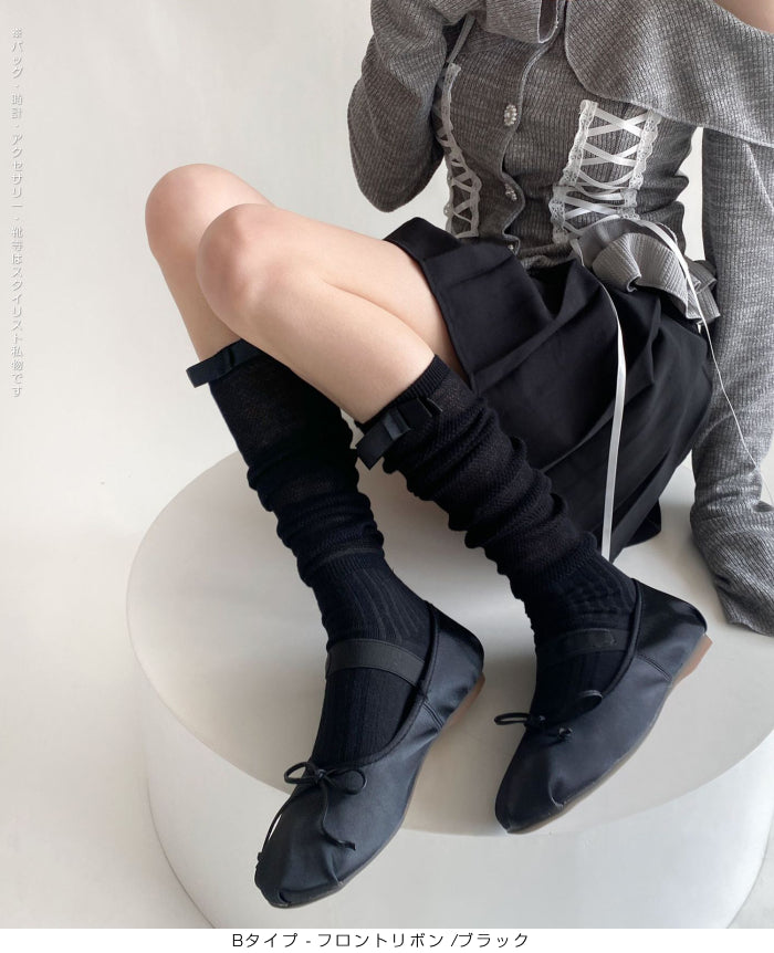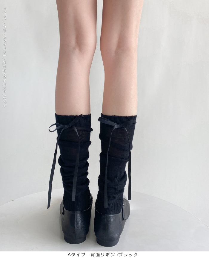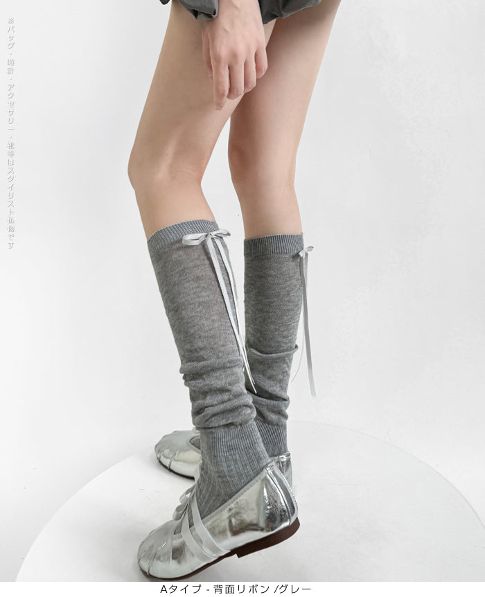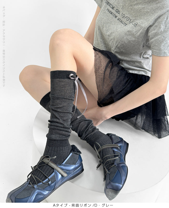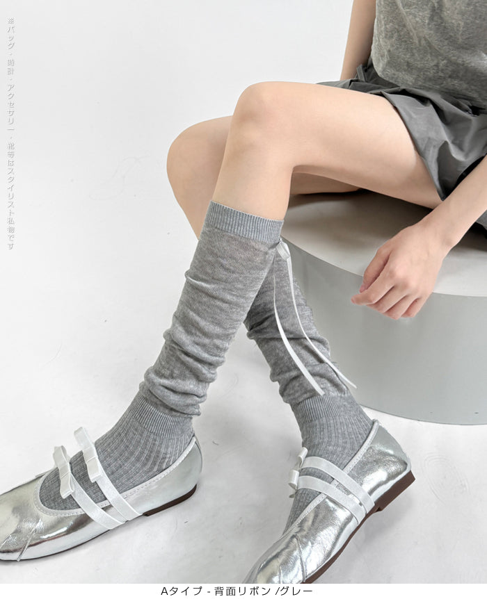 ふんわり可愛いバレエ風くしゅくしゅソックス - D・グレー / Aタイプ-背面リボン ...は取り寄せ中で入荷次第発送します。
