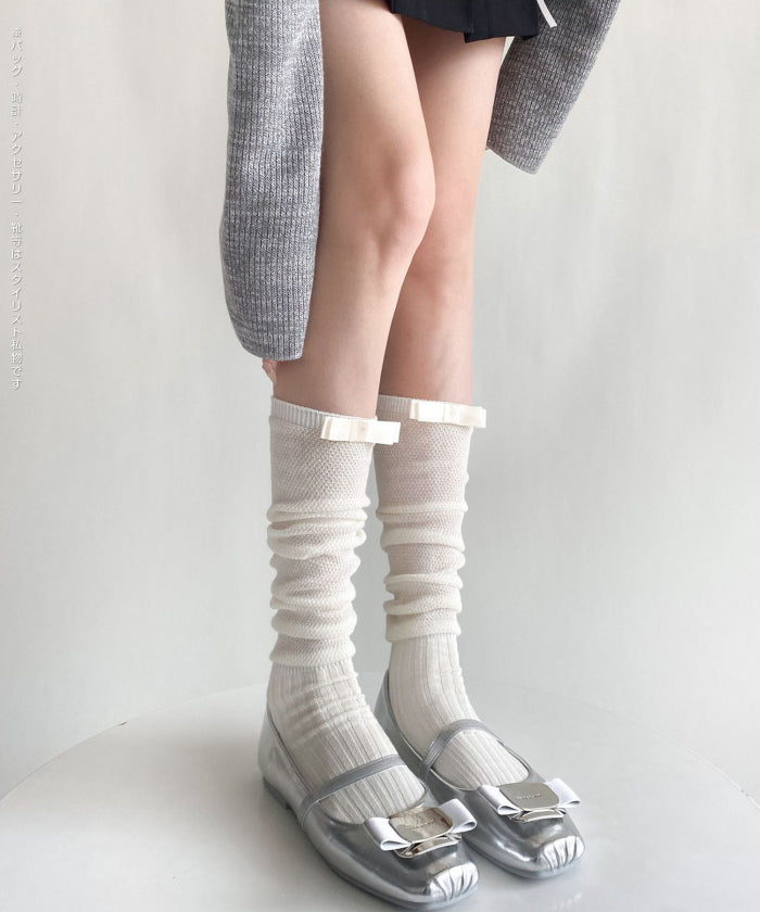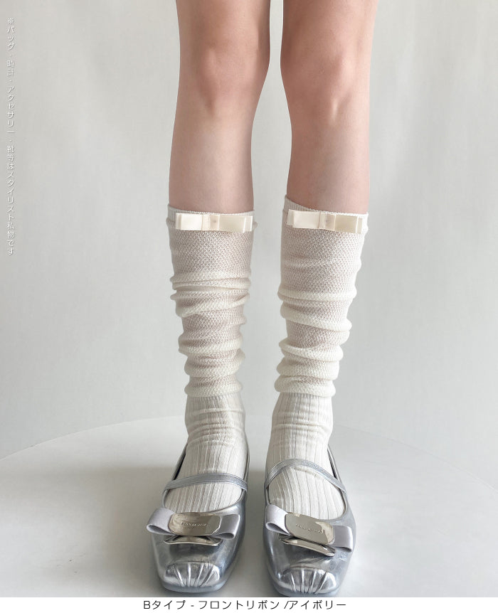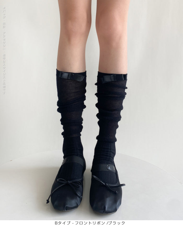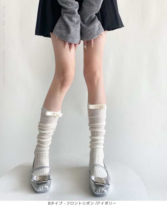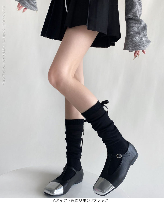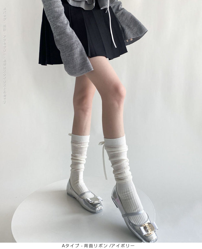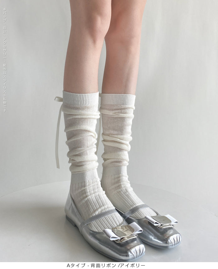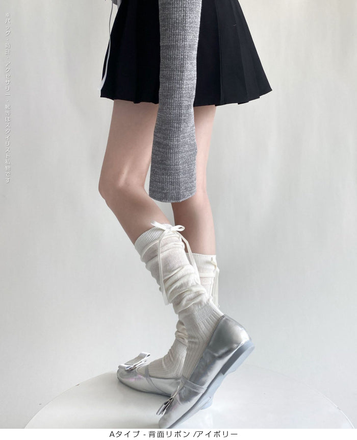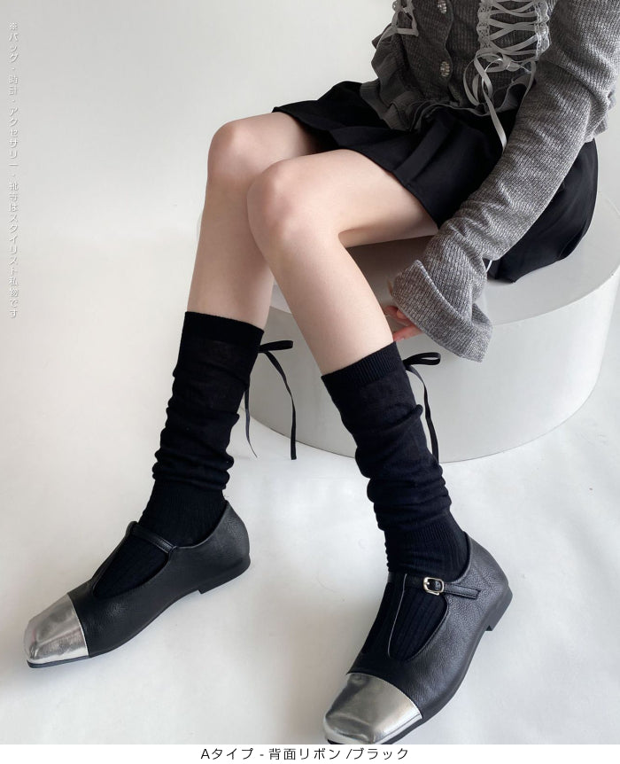 ふんわり可愛いバレエ風くしゅくしゅソックス - D・グレー / Aタイプ-背面リボン ...は取り寄せ中で入荷次第発送します。