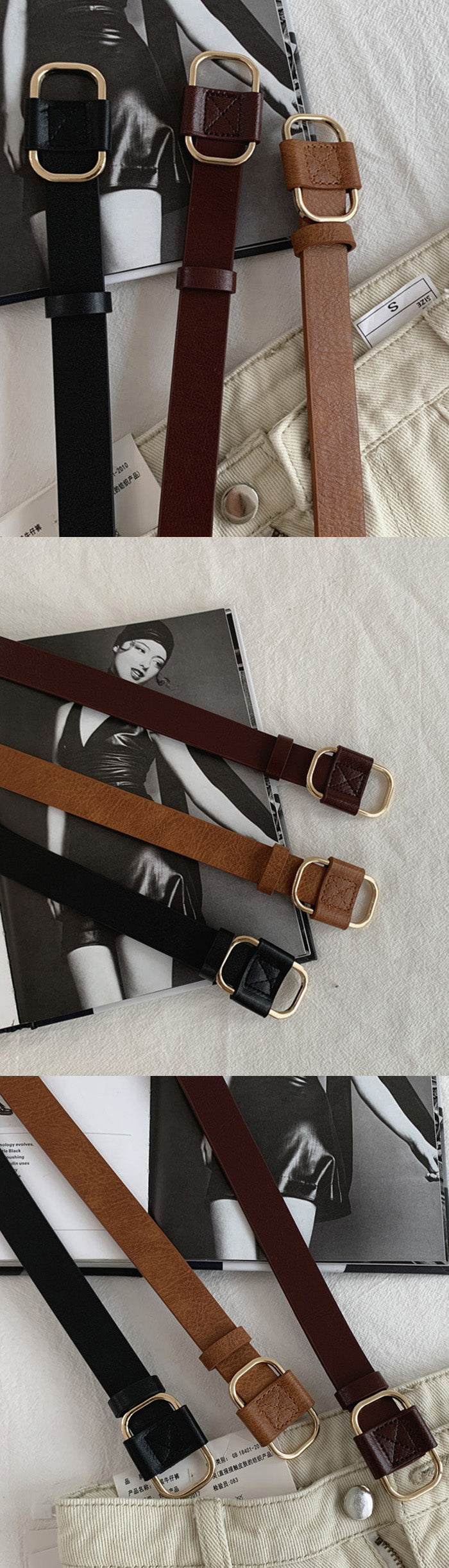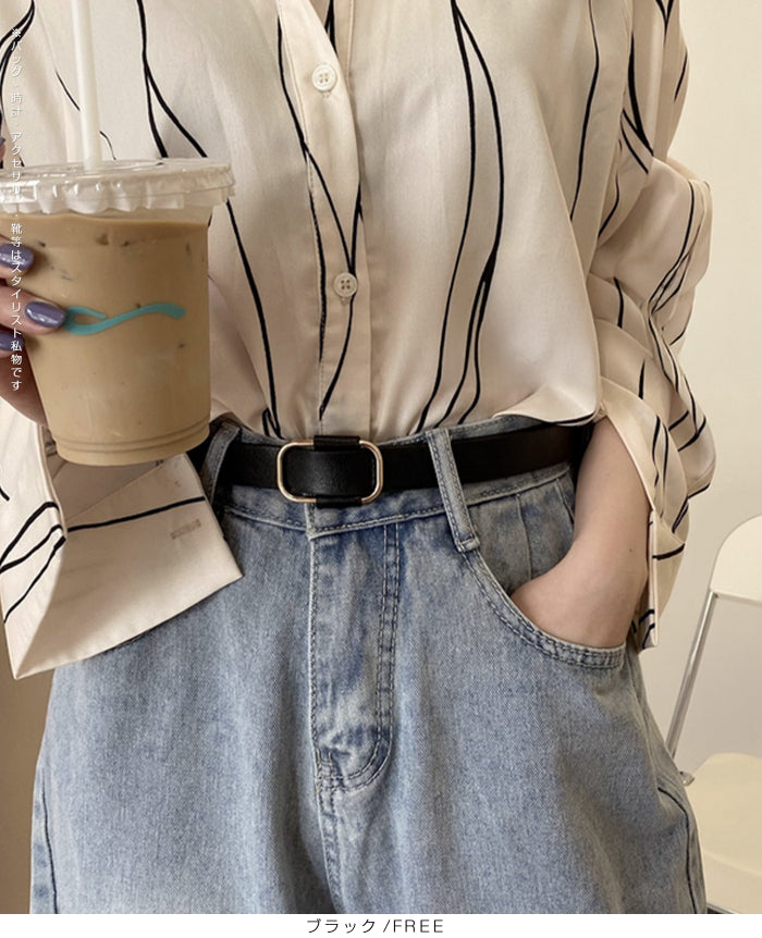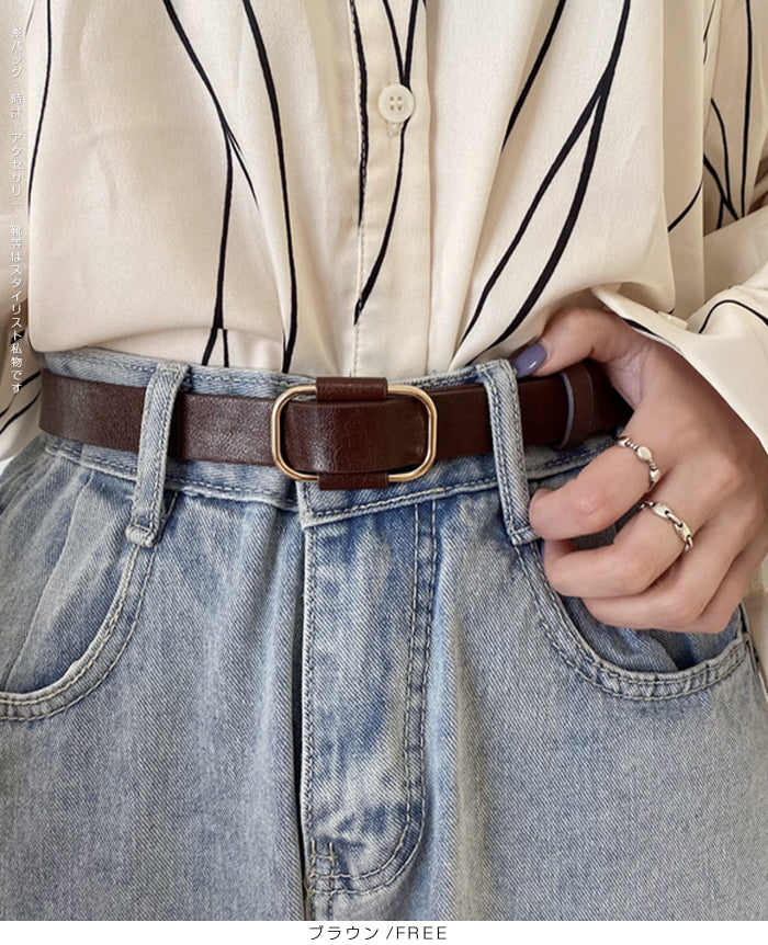 【 穴無しスクエアベルト 】 穴のないスマートデザインで、サイズ調整が自由自在な レザーベルト。 上質な合皮素材とシンプルなゴールドバックルで、 カジュアルにもフォーマルにも合わせやすい万能アイテムです。 ウエストにすっきりフィットし、長時間の着用でも快適。 コーディネートのアクセントとしても大活躍します。 《商品ポイント》 穴なしタイプで自由にサイズ調整可能 シンプルで高見えするゴールドバックル 上質なフェイクレザーで耐久性&扱いやすさ抜群 メンズ・レディース兼用で幅広く活躍 デイリーからオフィス、フォーマルまで幅広く対応 《デザイン・シルエット》 無駄のないミニマルデザインと、すっきりとしたシルエットが魅力。 スクエア×ラウンドがミックスしたバックルは、 上品さと程よいカジュアル感を両立。 厚すぎず細すぎないベルト幅で、 パンツ・スカート・ワンピースどんなアイテムにもマッチします。 《コーディネート提案》 デニムに合わせてカジュアルスタイルのアクセントに 白シャツやスラックスと合わせてオフィスカジュアルに ニットワンピースのウエストマークとしてスタイルアップ ジャケットコーデにプラスして大人のきちんと感を演出 男女ペアでシェア使いもおすすめ 《サイズ・カラーバリエーション》 カラー:ブラック / ブラウン / キャメル 《素材・機能性》 ・素材:PUレザー ・仕様:穴無しデザイン |