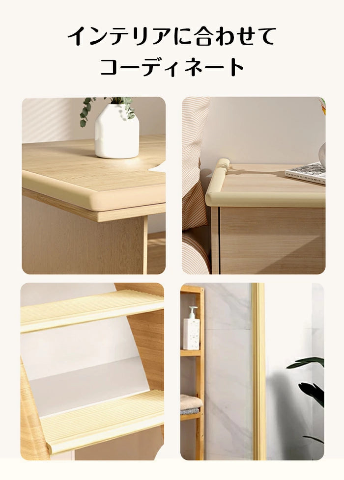 【 コーナーガード クッション 】 赤ちゃんや子供、ペット(犬)まで安心して使える衝撃吸収タイプのコーナーガード クッション。 テーブルや机、棚、ベッド、テレビ台、階段、壁など、あらゆる角をやさしく保護し、ぶつかりやケガ防止に役立ちます。 柔らかく厚みのあるクッション素材が衝撃を吸収し、赤ちゃんや幼児、キッズのケガをしっかり防止。 おしゃれなデザインでお部屋にも自然になじみ、家の安全対策とインテリア性を両立します。 L型ガード・W型ガード・U型ガード・コーナー ガードの4タイプ展開で、家具や用途に合わせて選べます。 コーナークッションとしても使え、机の角・棚の縁・壁際などにぴったりフィット。 防水タイプのコーナーガードは、水や油にも強く、キッチンや洗面所にも最適。 汚れてもサッと拭くだけで清潔に保てます。 柔軟で破れにくい高密度素材を採用し、長く使える安心設計。 ペットが触れても安全で、赤ちゃんがかじっても安心な仕様です。 波型デザインのW型クッションや、U字型の防水タイプも用意。 家具・壁・デスク・ベッドなど、あらゆる角にしっかりフィットします。 幼稚園や子供部屋、保育園、リビングの安全対策にもおすすめ。 ウォールクッション・壁クッションと組み合わせても使えます。 おしゃれで機能的なガード コーナークッション。 家族みんなの安全を守る、やさしいクッションガードです。 |