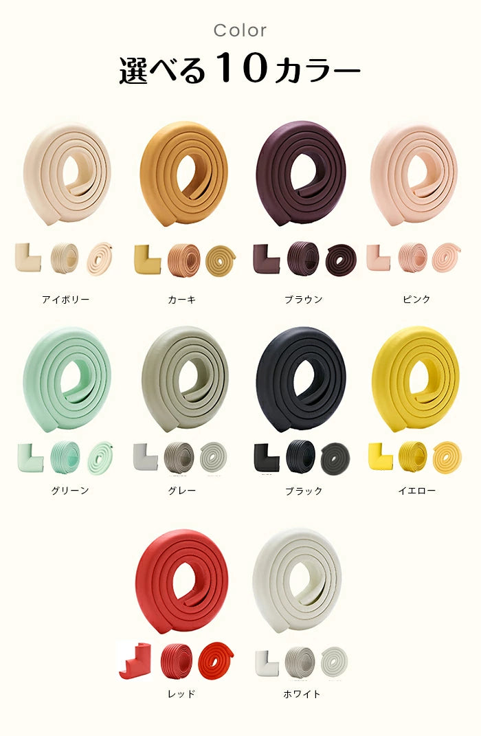 ■ サイズ:L型ガード(約2m)、W型ガード(約2m)、コーナーガード(10個入)、U型ガード(約2m) ■ カラー:アイボリー、ホワイト、グレー、カーキ、ブラウン、ピンク、グリーン、ブラック、イエロー、レッド |