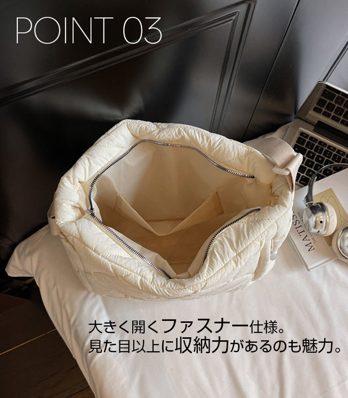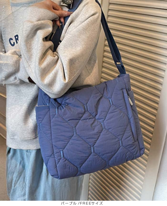 《商品ポイント》 軽量&ふんわり感のあるキルティング素材 内部ポケット付きで収納力抜群 長めのショルダーストラップでラクに肩掛けOK 外ポケットでスマホや小物の出し入れもスムーズ 季節感を演出できるカジュアルかつおしゃれなデザイン 《デザイン・シルエット》 立体的なキルティングステッチが特徴 柔らかなシルエットで体に馴染む形 シンプルながらも都会的な雰囲気を演出 開閉はファスナー仕様で安心感◎ 《コーディネート提案》 カジュアルコーデに:スウェット×デニムに合わせてデイリー使いに キレイめコーデに:ロングコートやニットワンピに合わせて季節感あるスタイルに お出かけに:ふんわり軽いので旅行やショッピングにもおすすめ オフィスカジュアルに:落ち着いたカラーを選べば通勤バッグにも◎ 《サイズ・カラーバリエーション》 サイズ:FREEサイズ カラー:ブラック / パープル / グレー / ベージュ / アイボリー 《素材・機能性》 ・素材:ナイロン ・重さ:240g ・仕様:外側サイドポケット2 外側フロントポケット1 |