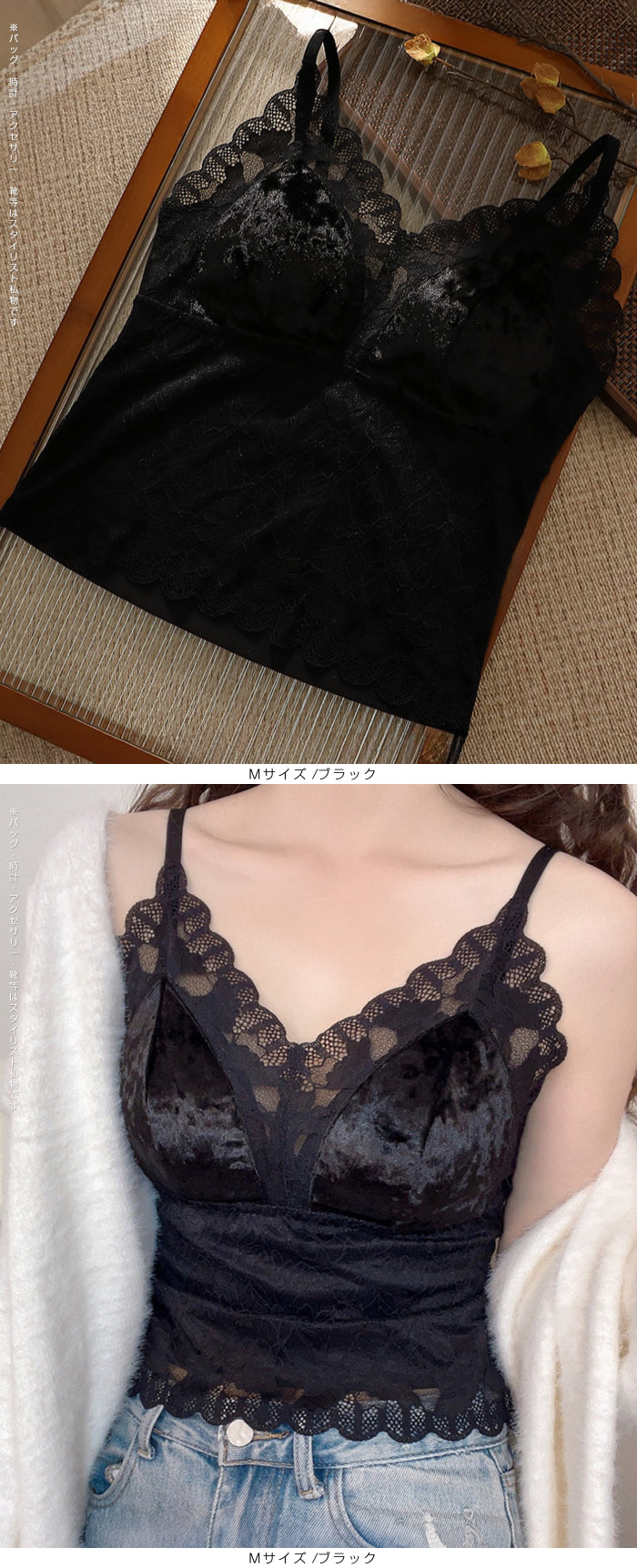 あったかベロア×レースキャミソール - ブラック / Mサイズ ...は取り寄せ中で入荷次第発送します。