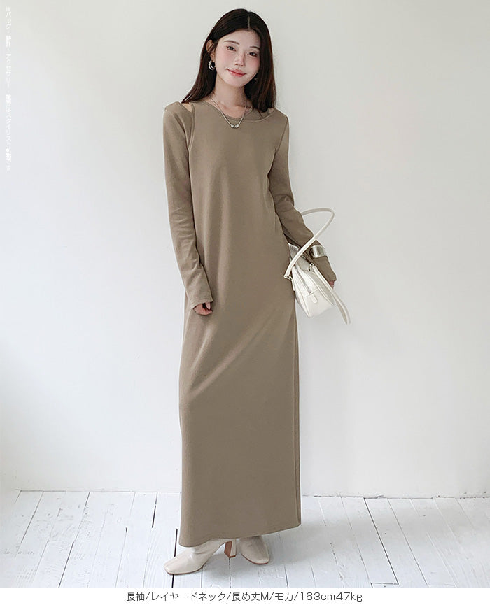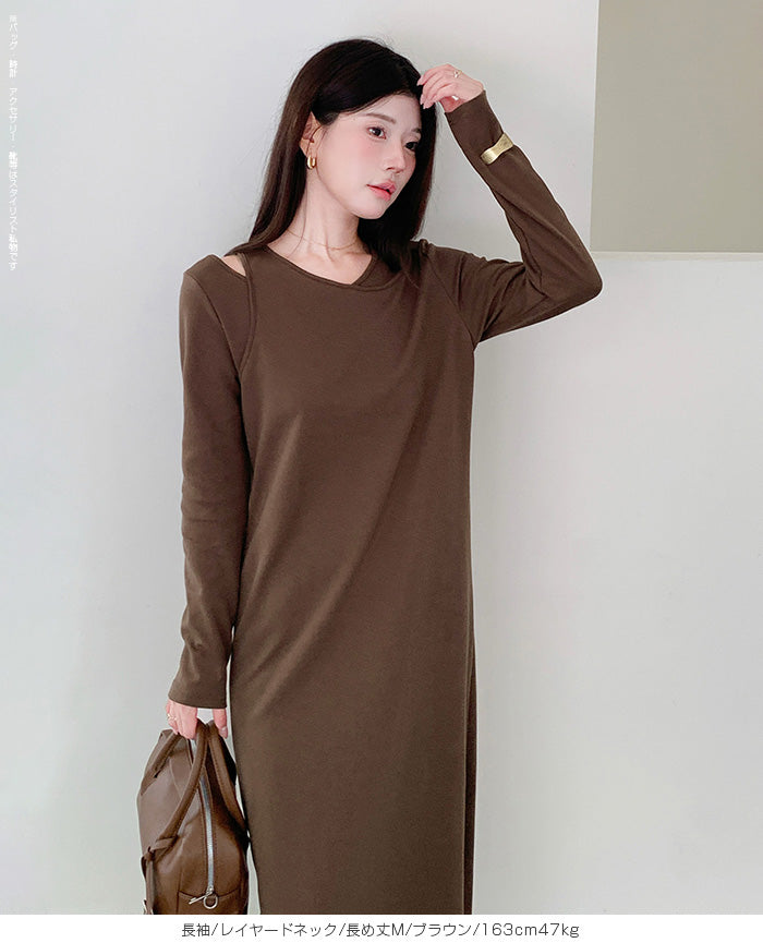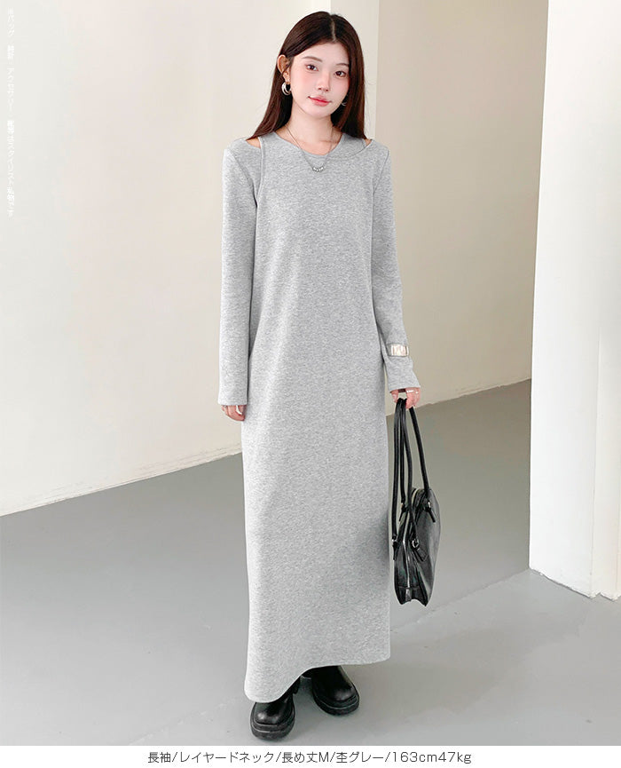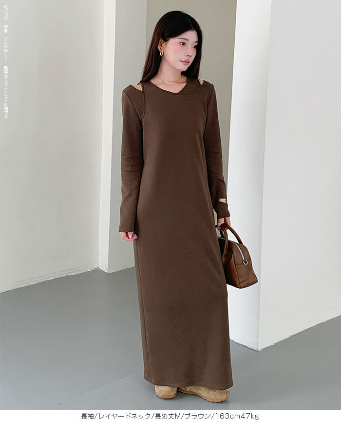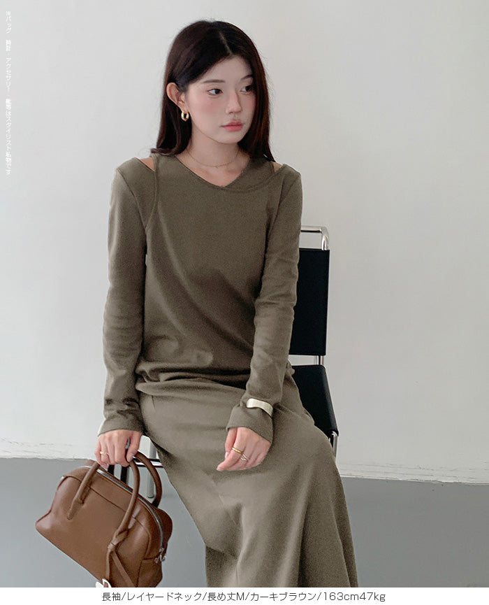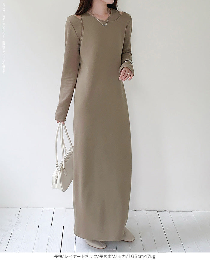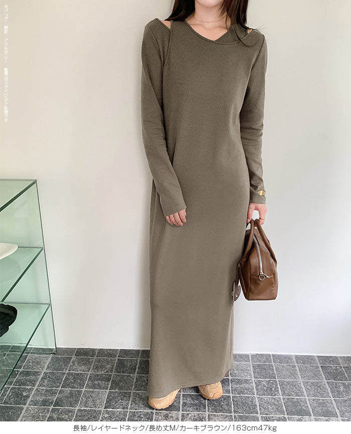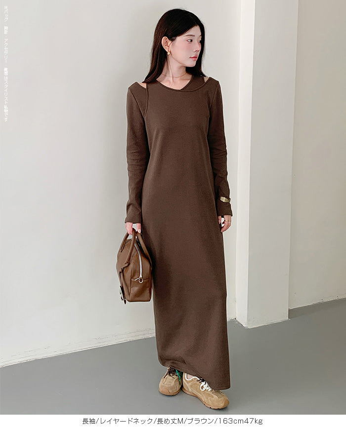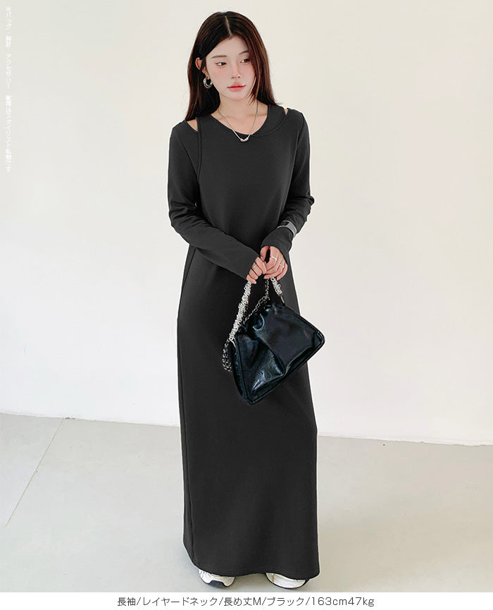 レイヤードネックマキシワンピース