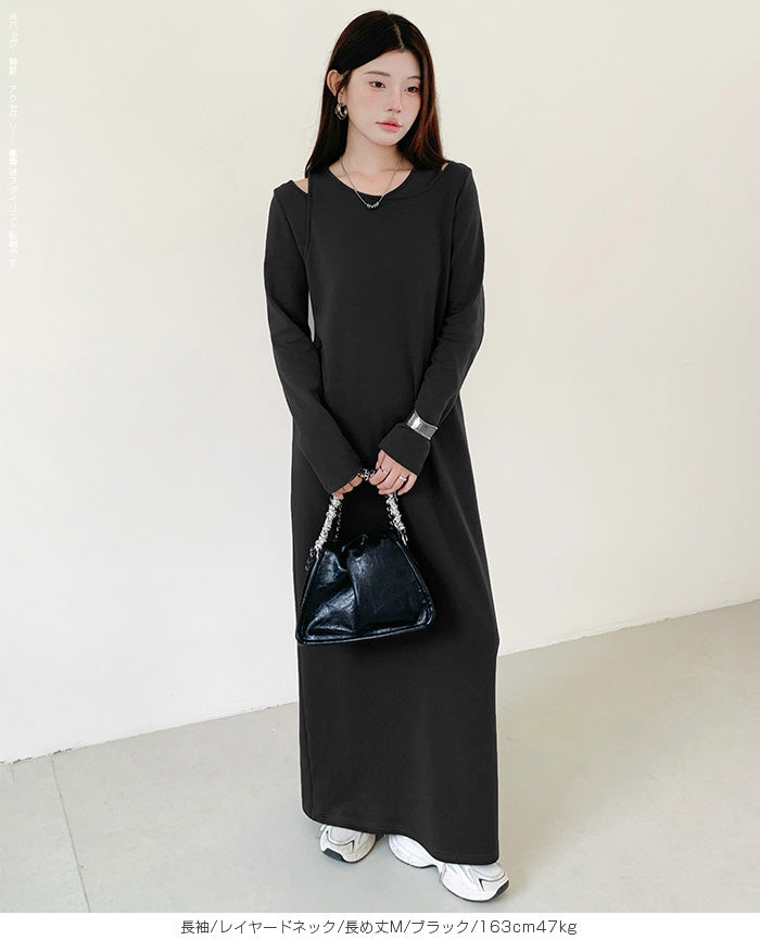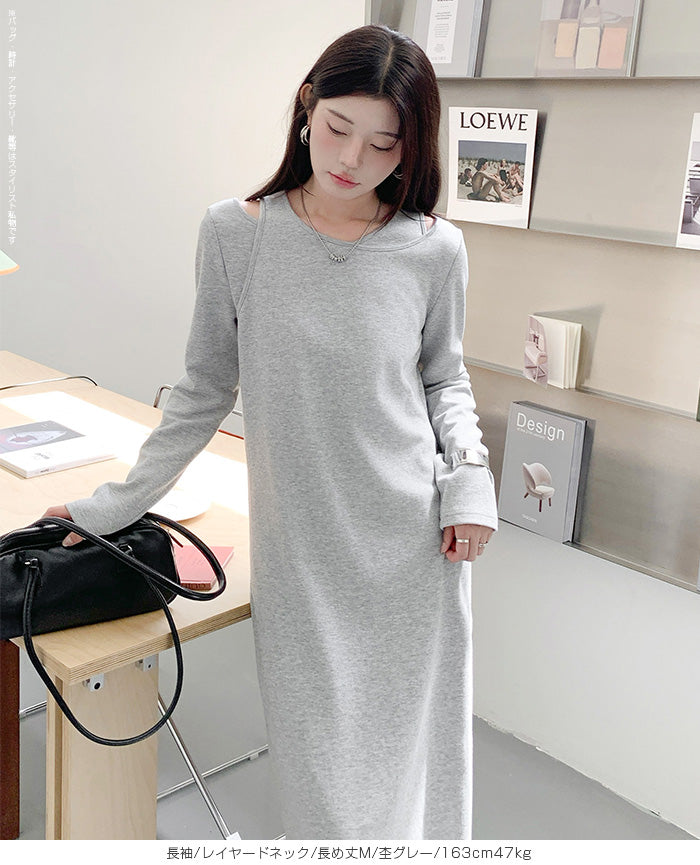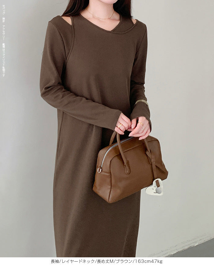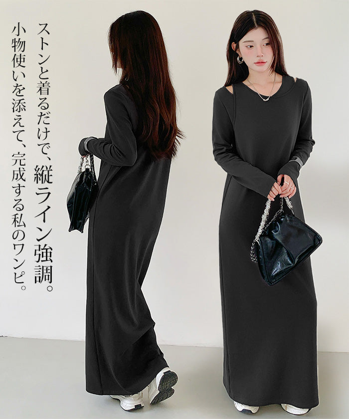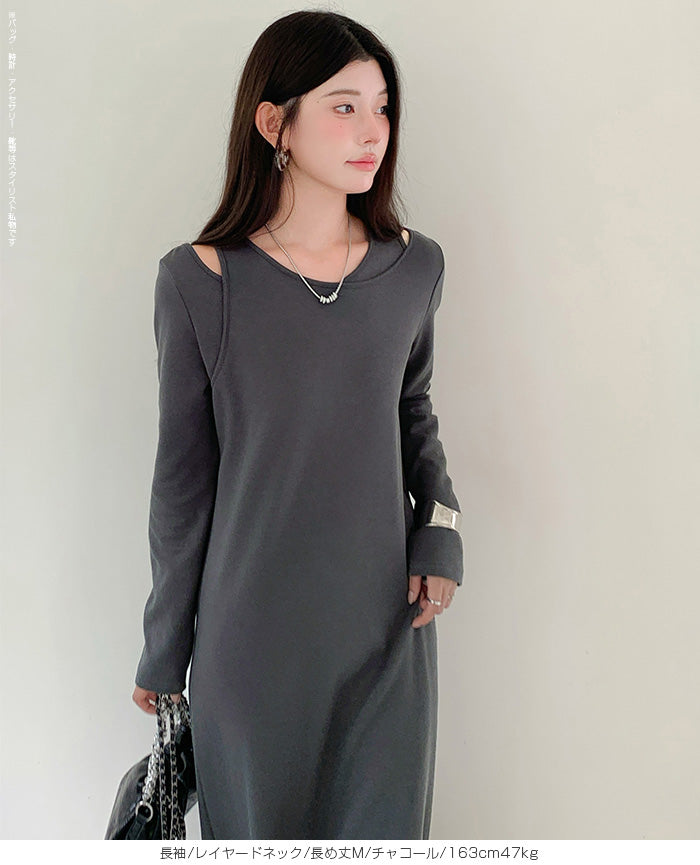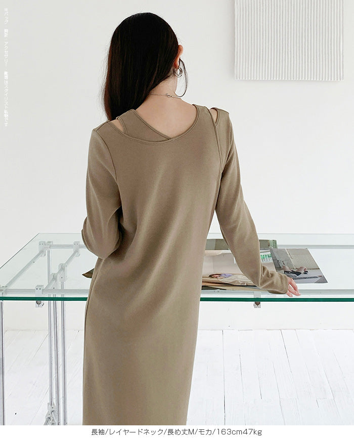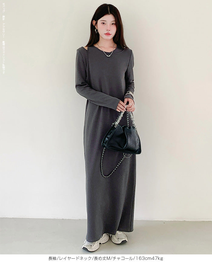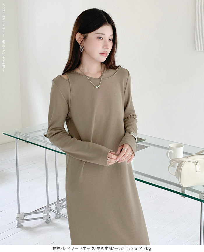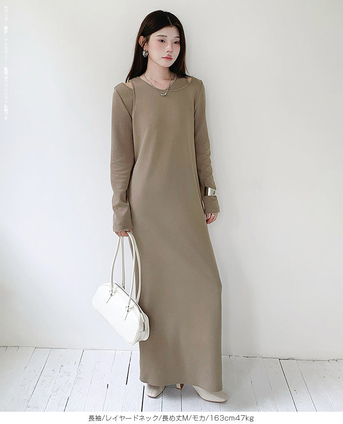 レイヤードネックマキシワンピース
