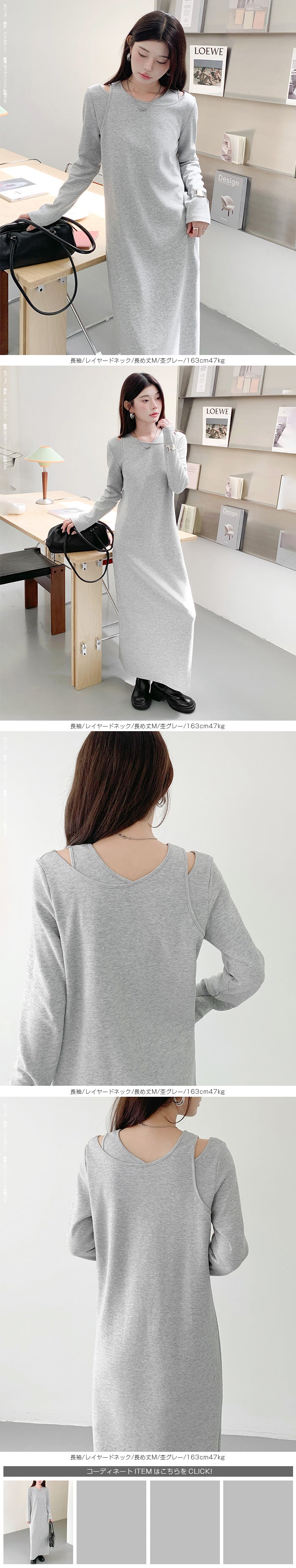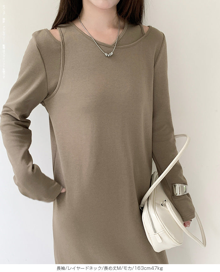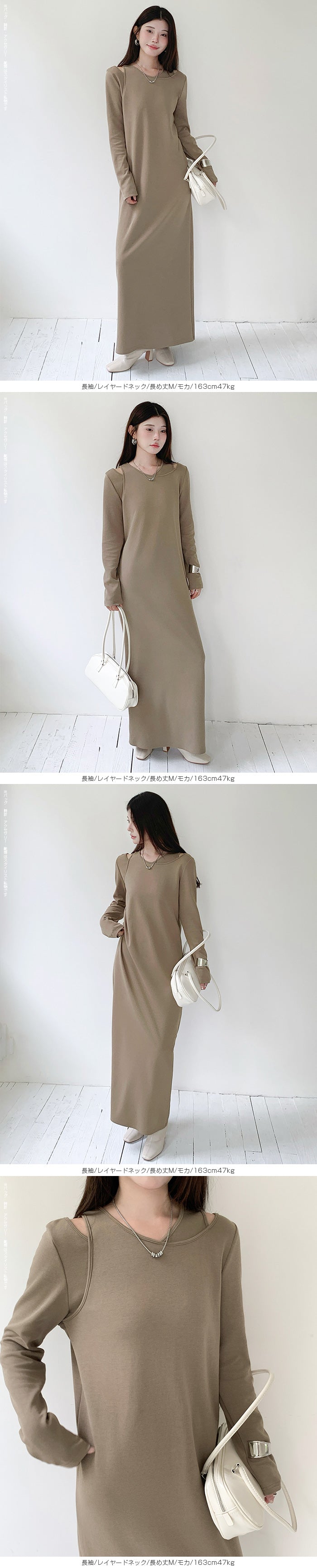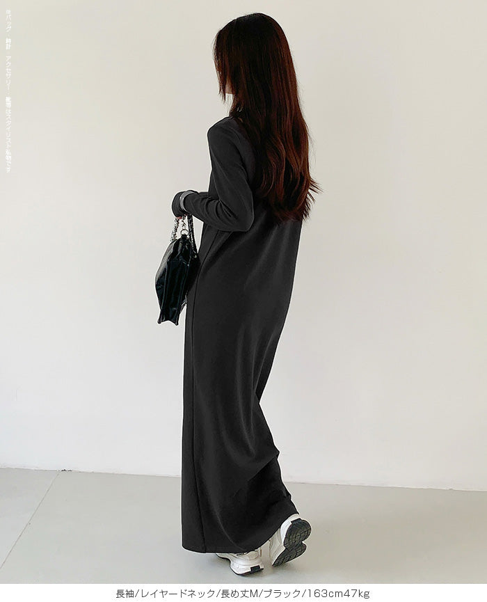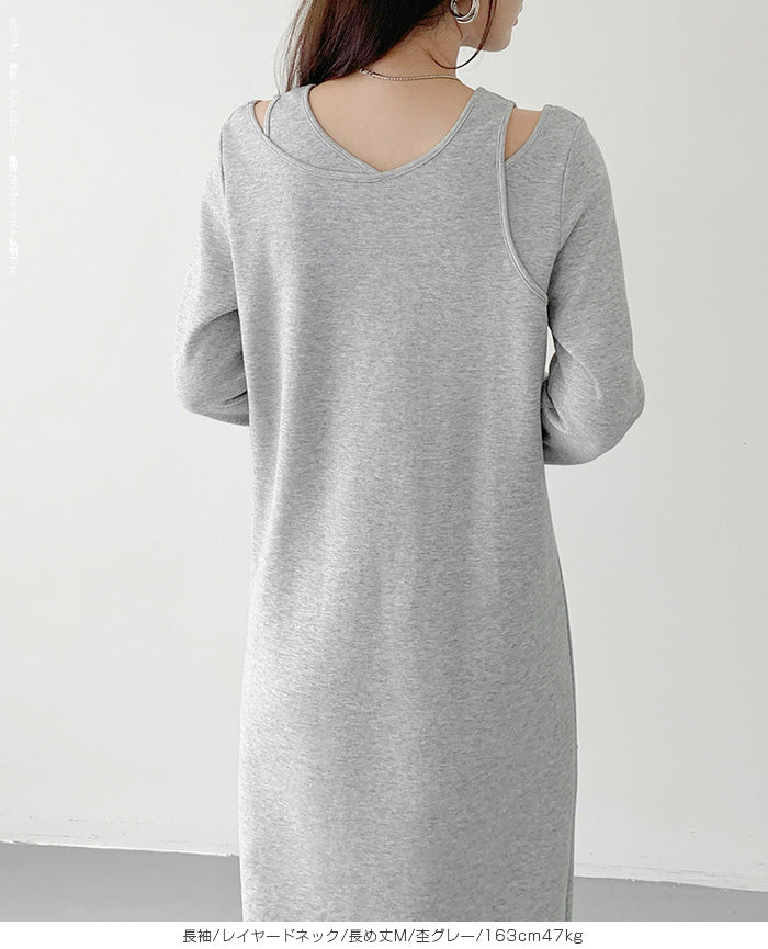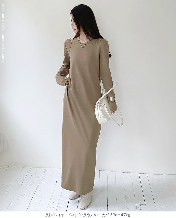 レイヤードネックマキシワンピース