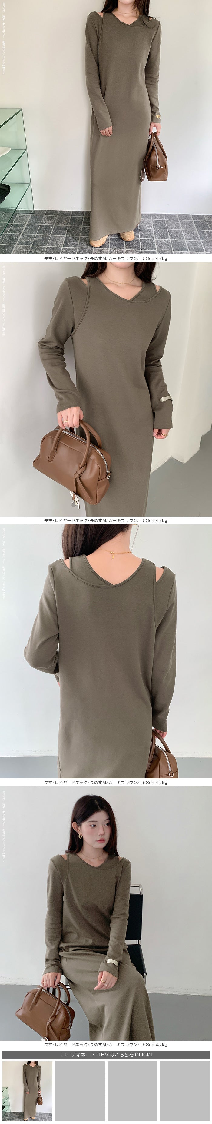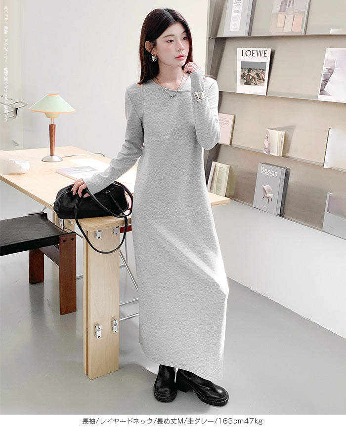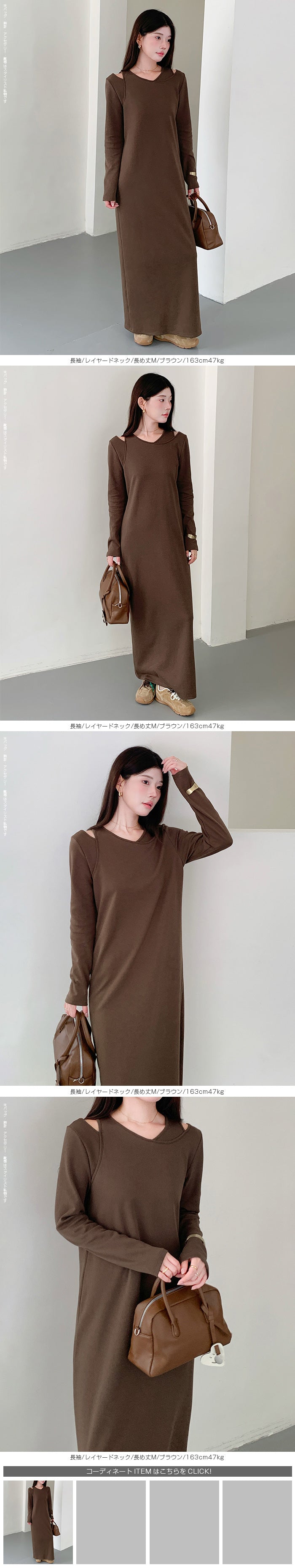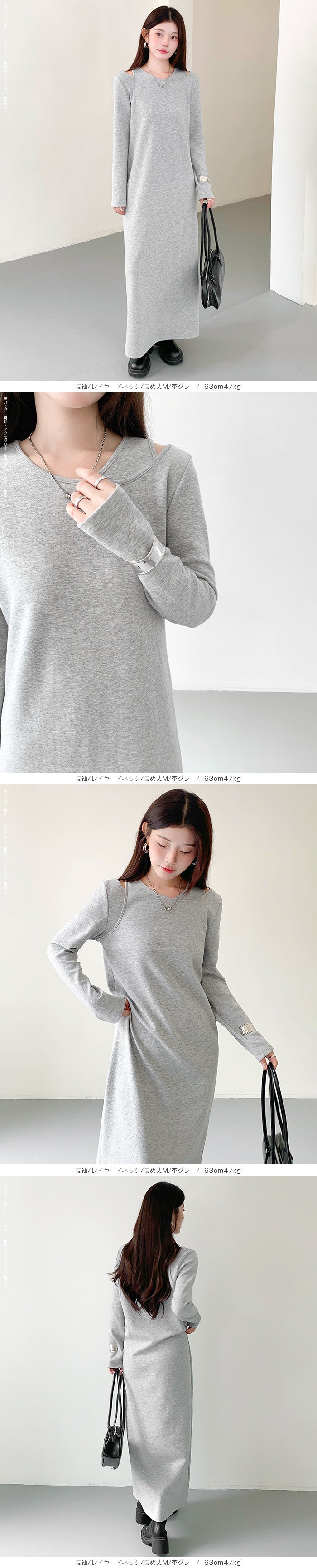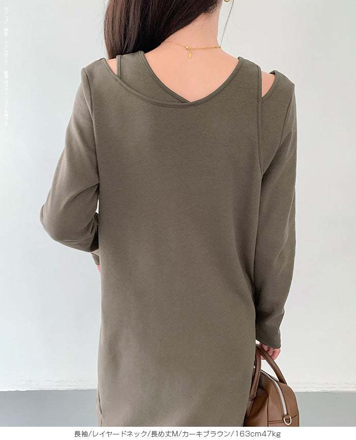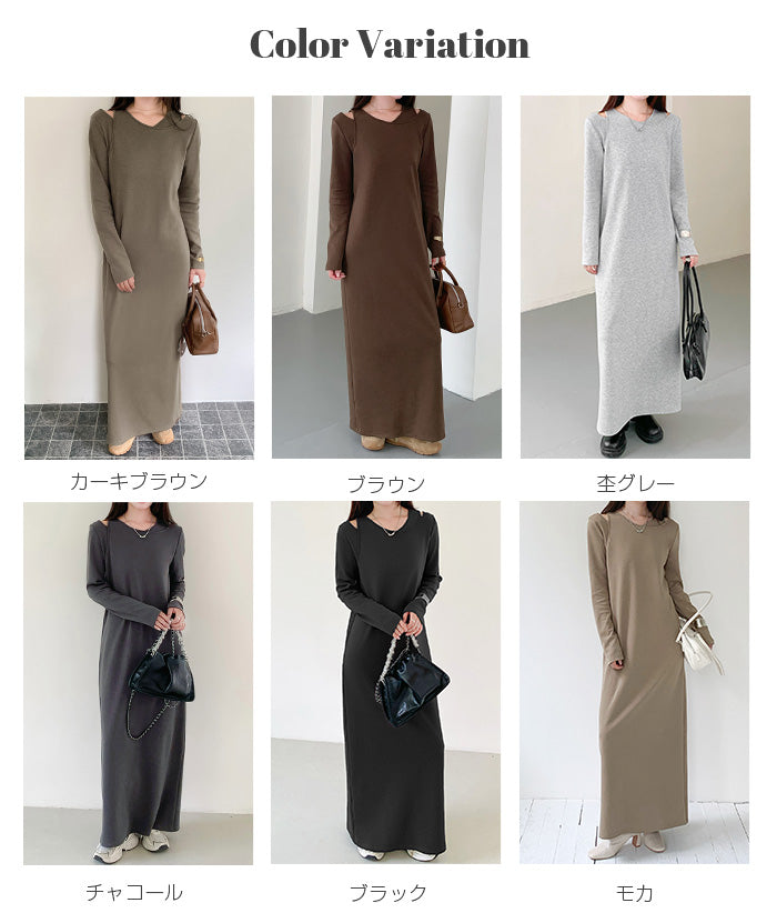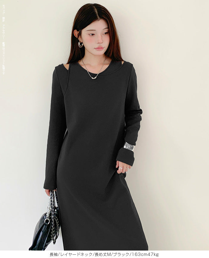 レイヤードネックマキシワンピース