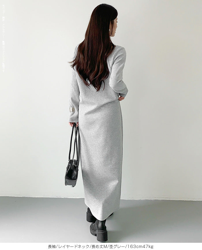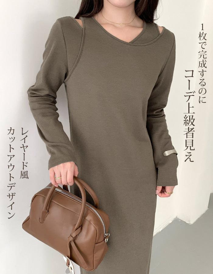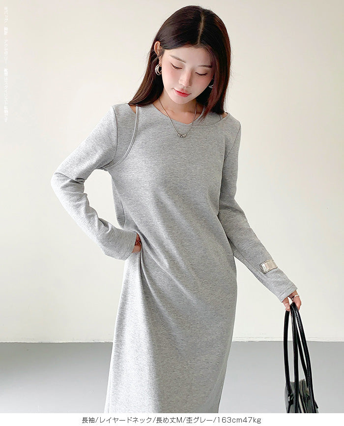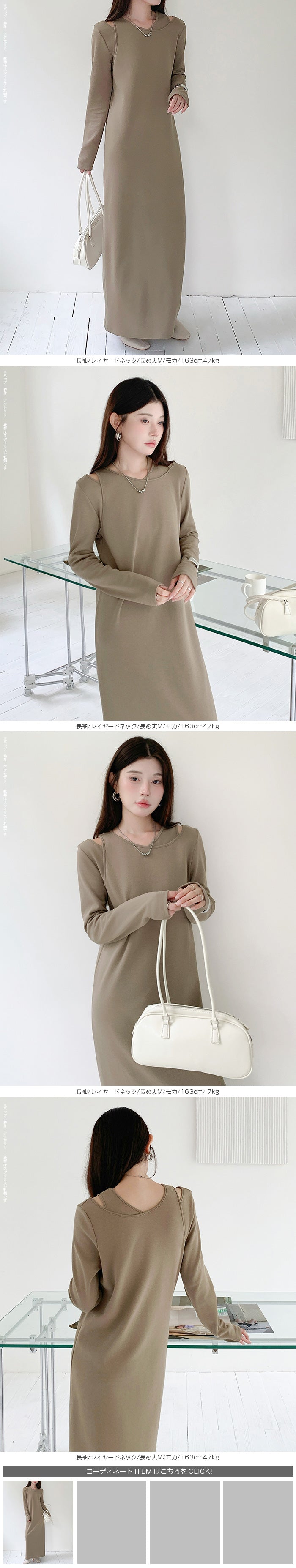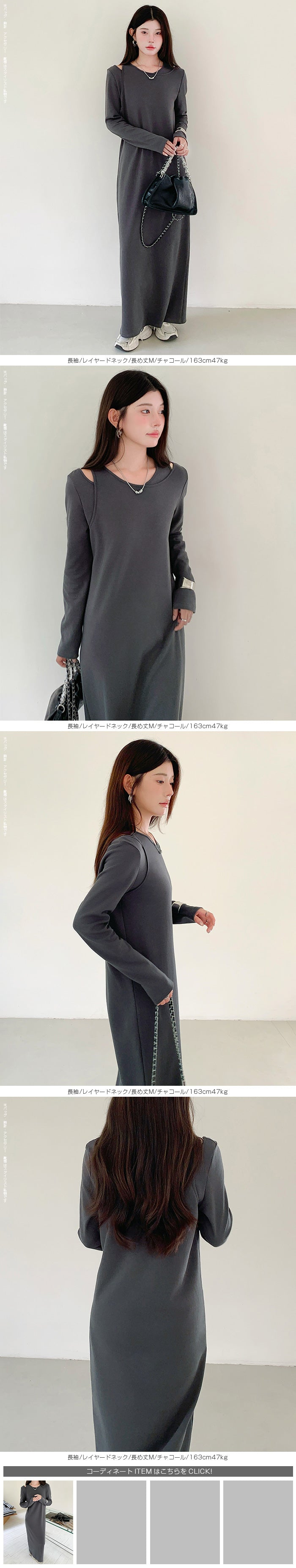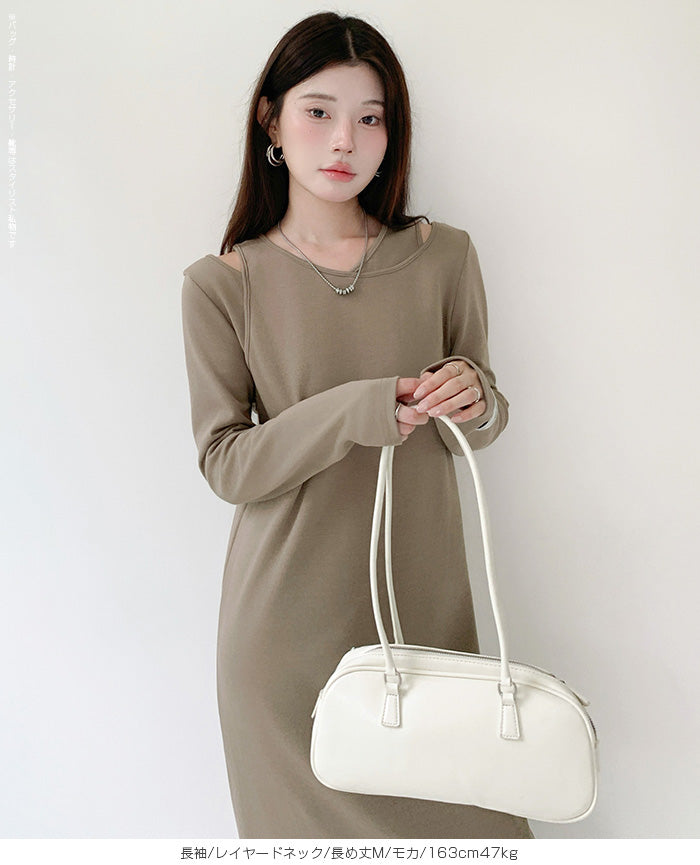 レイヤードネックマキシワンピース