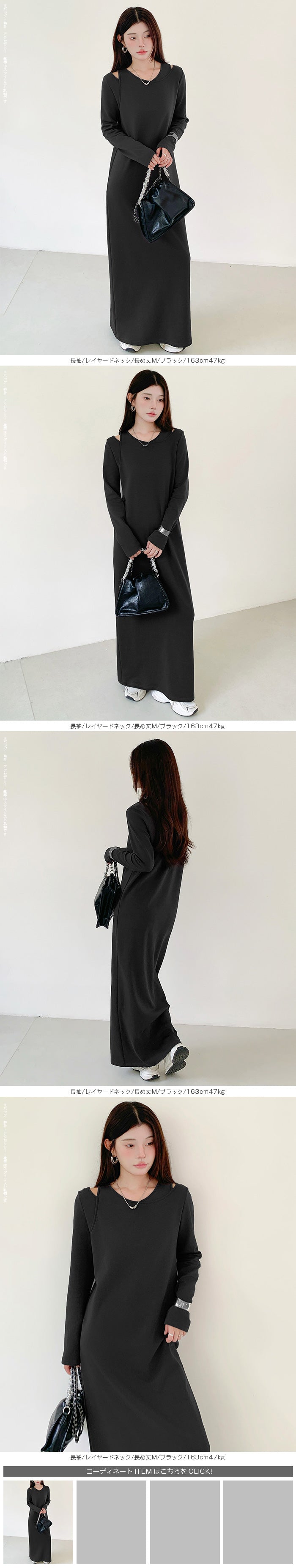 レイヤードネックマキシワンピース - 長袖/レイヤードネック/長め丈M / ブラック ...は取り寄せ中で入荷次第発送します。