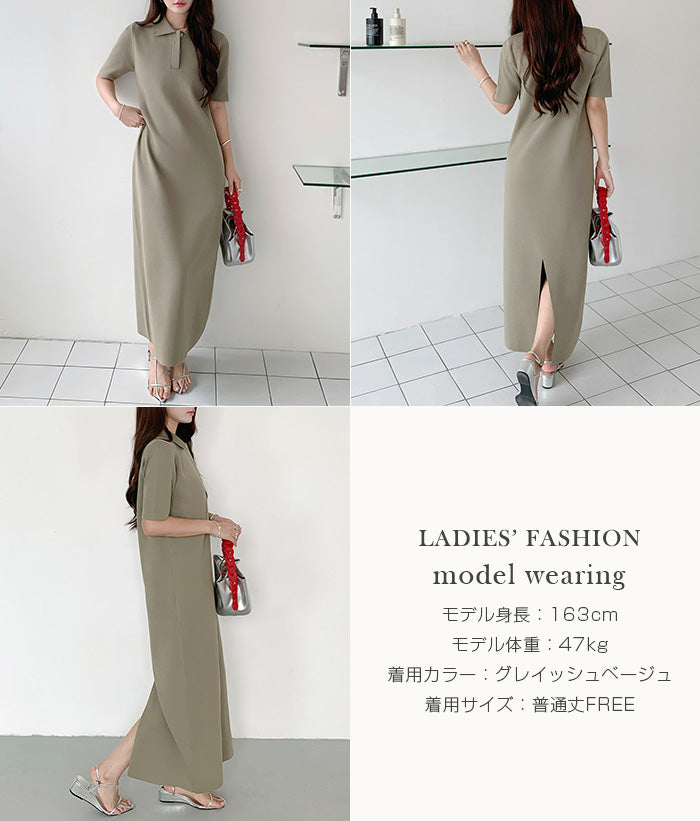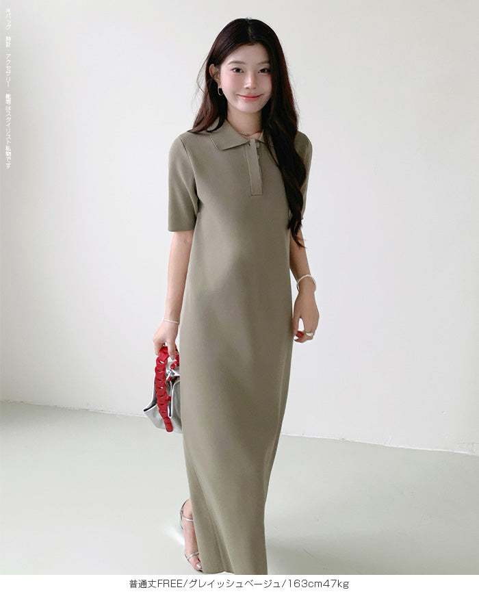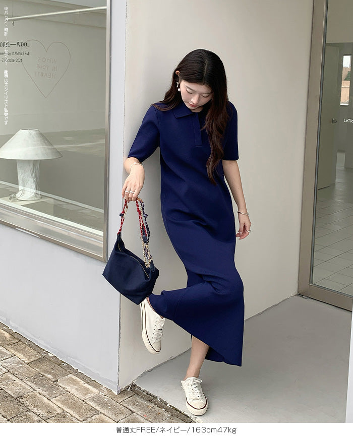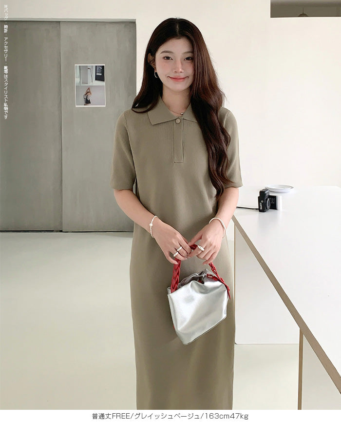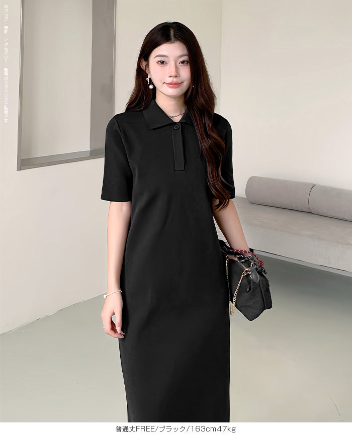 「半袖ポロマキシワンピース」は、 ポロ襟付きのニット素材で作られたマキシ丈Iラインワンピ。 縦長のシルエットとスリット入りバックでスタイルアップを叶え、 春夏のきれいめカジュアルやオフィスにもぴったり。 幅広い体型に対応可能なFREEサイズ展開で、スニーカーやフラットシューズとの相性も◎ 【体型カバー ワンピ】【ポロワンピース レディース】 【素材感・着心地】 柔らかなポリエステルニットで、程よい厚みとストレッチ性あり。 春〜秋口のクーラー下や朝晩涼しい季節に快適な着心地。 【シルエット・サイズ感】 ストンと落ちるIラインシルエットが、身長を問わず縦長見えをサポート。 短め丈は身長155cm前後の方にお勧め 普通丈は身長160cm前後の方にお勧め 【機能性】 ポロ襟できちんと感+カジュアル感を両立 バックにスリット入りで、歩きやすさ◎ ストレッチ性と軽量感による着心地の快適さ ご家庭で洗濯可能(洗濯表示に従うこと) 【着回し&コーデ提案】 通勤スタイル:アイボリーにジャケット+ヒール合わせで洗練されたオフィスルックに 休日カジュアル:ブラックにはスニーカー+ミニバッグでラフな大人カジュアルに 秋口レイヤード:アウターで季節の変わり目にも対応 |
