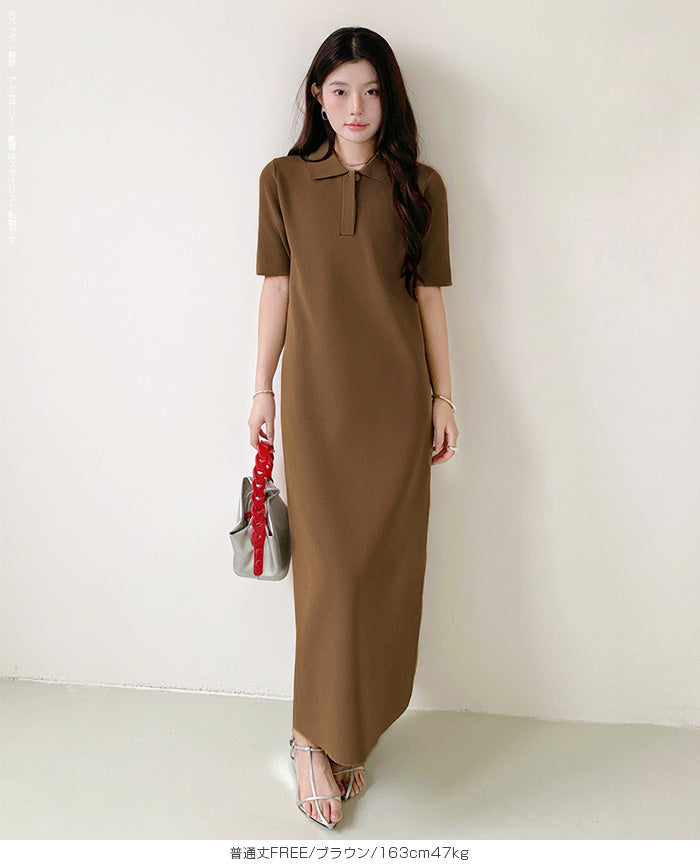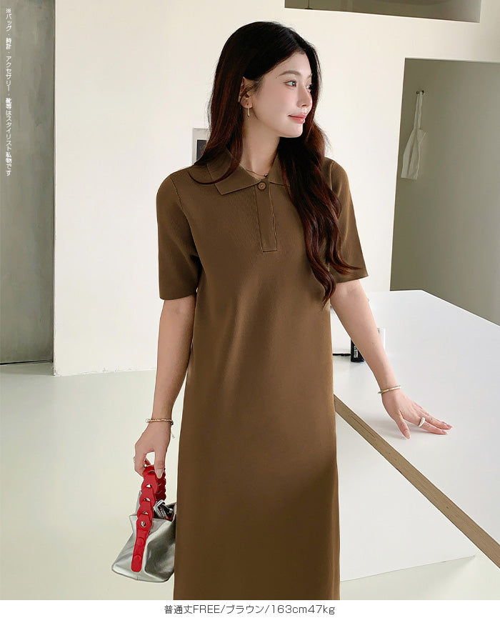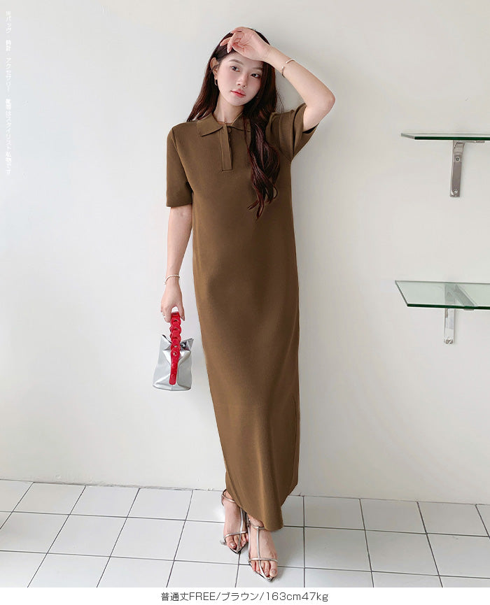 半袖ポロマキシワンピース - ブラウン / 普通丈/FREE ...は取り寄せ中で入荷次第発送します。