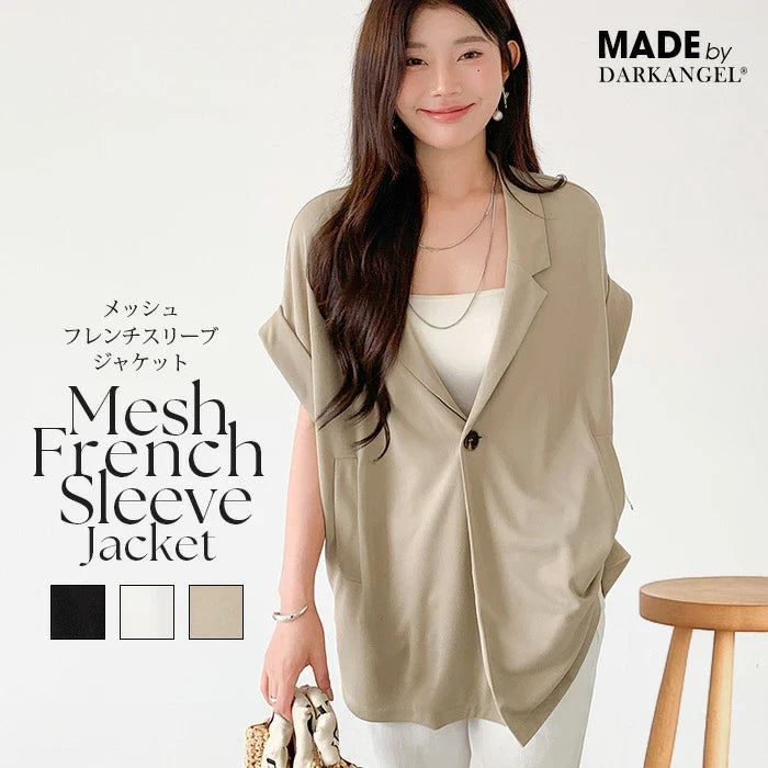 商品関連: フレンチスリーブ ジャケット レディース メッシュジャケット オーバーサイズ 半袖 羽織り 体型カバー UV対策 春夏 軽量 通勤 大人の夏ジャケット ゆったり冷房対策 無地ママ お母さん 20代 30代 40代 50代 おしゃれ お洒落 オシャレ かわいい 可愛い カワイイ ダークエンジェル