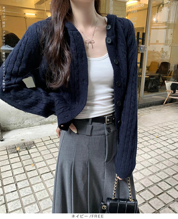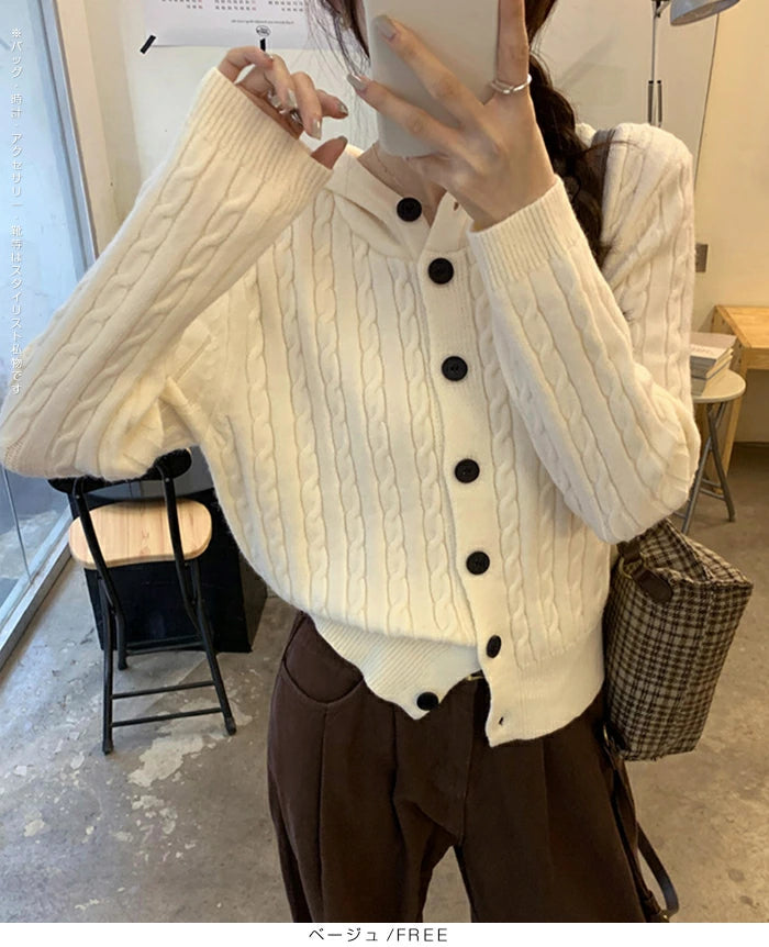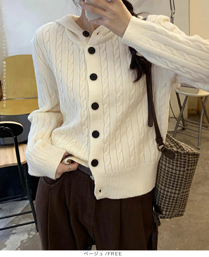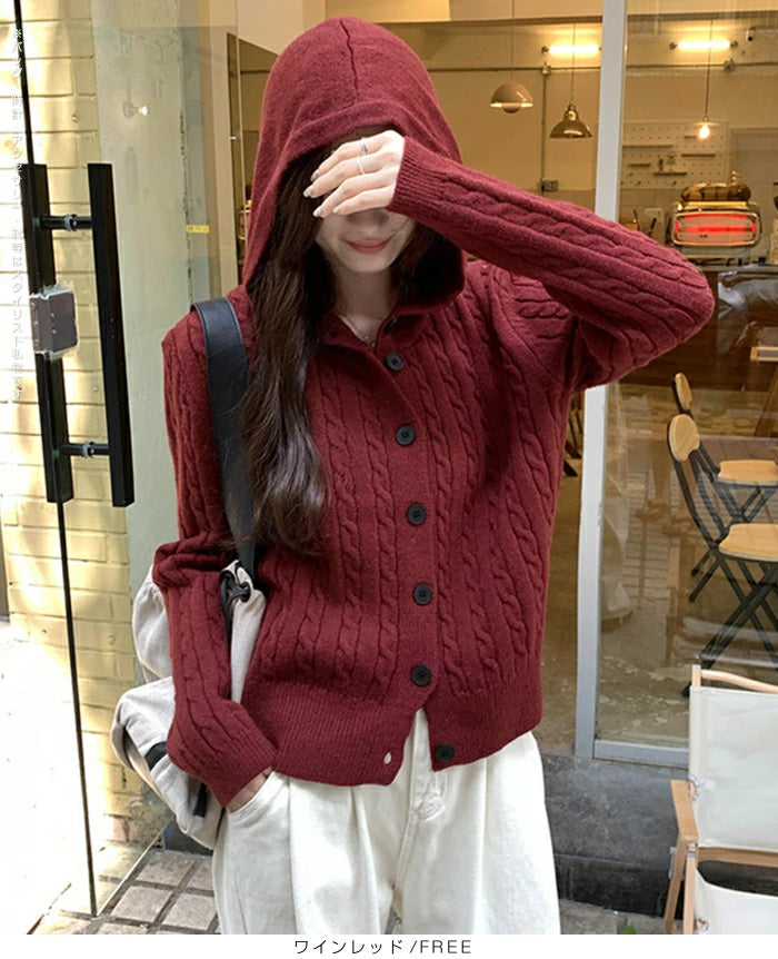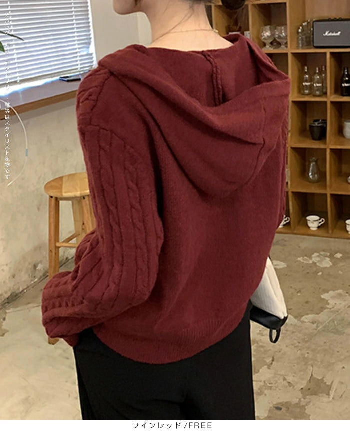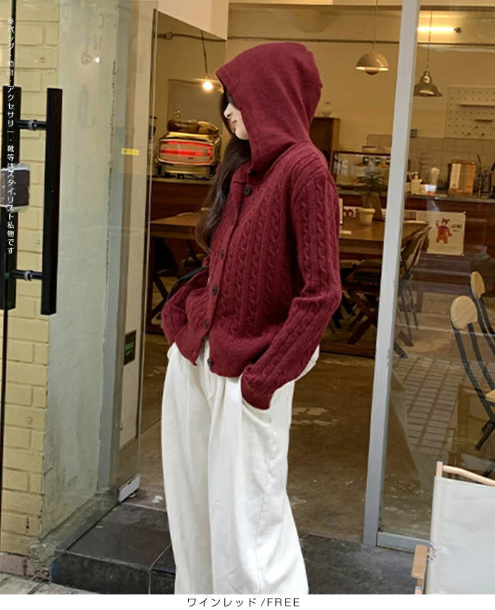 ケーブル編みフーディーカーディガン - FREEサイズ / ワインレッド ...は取り寄せ中で入荷次第発送します。