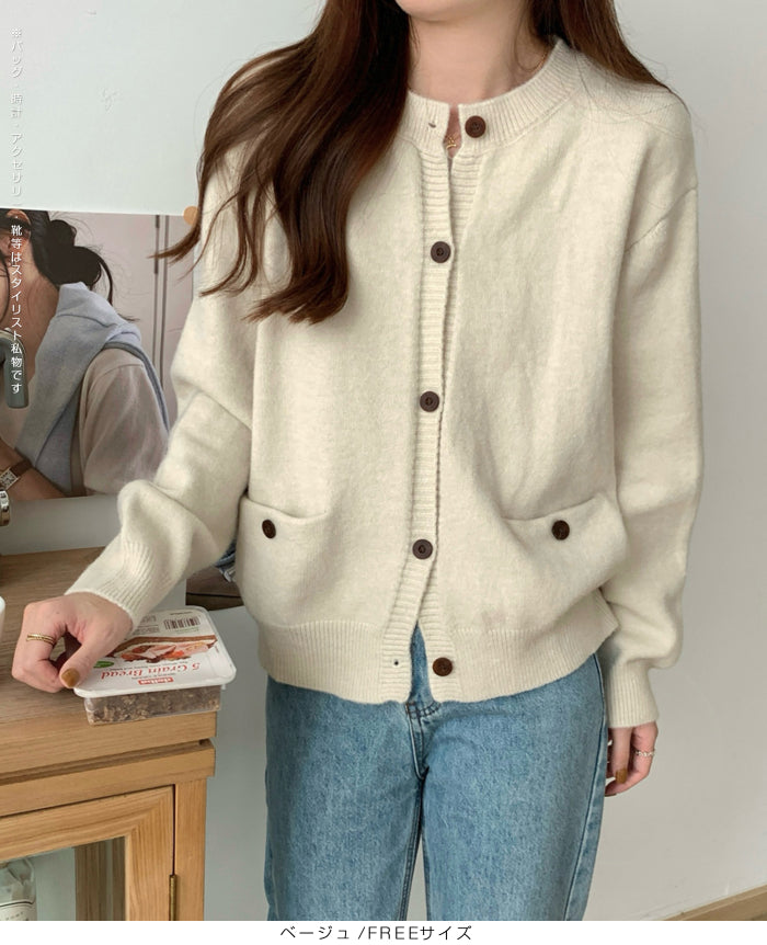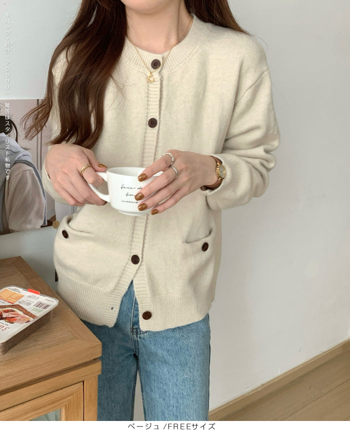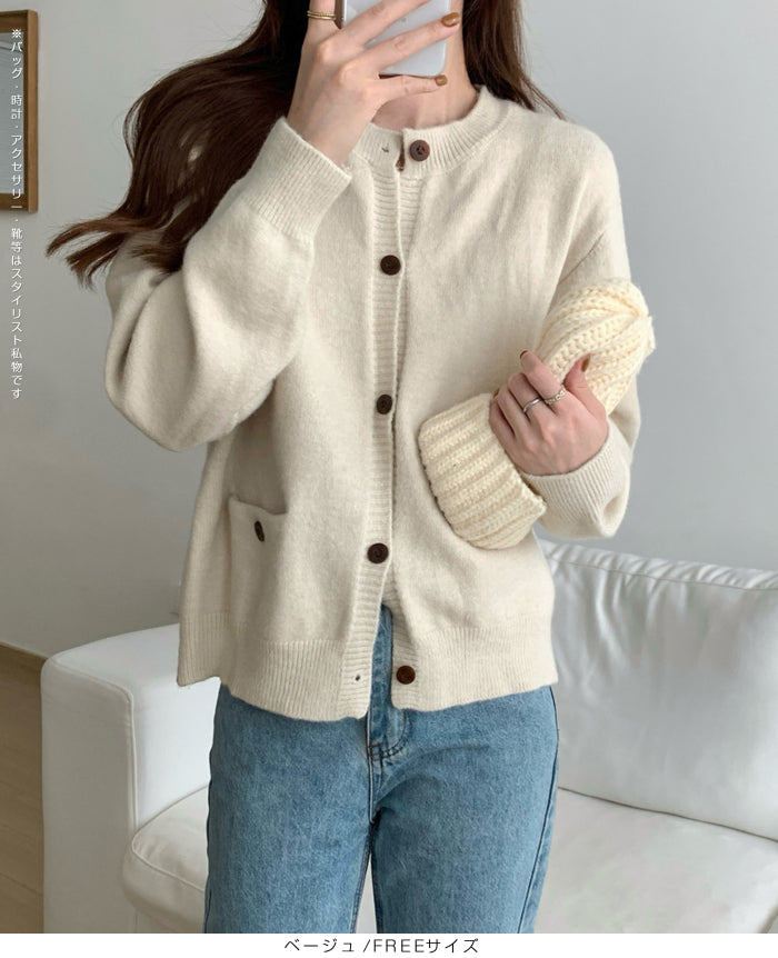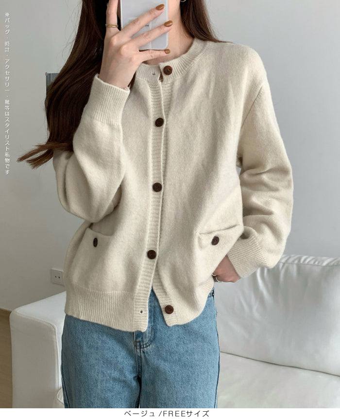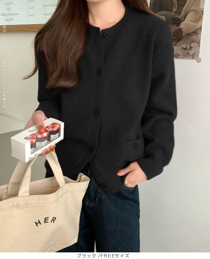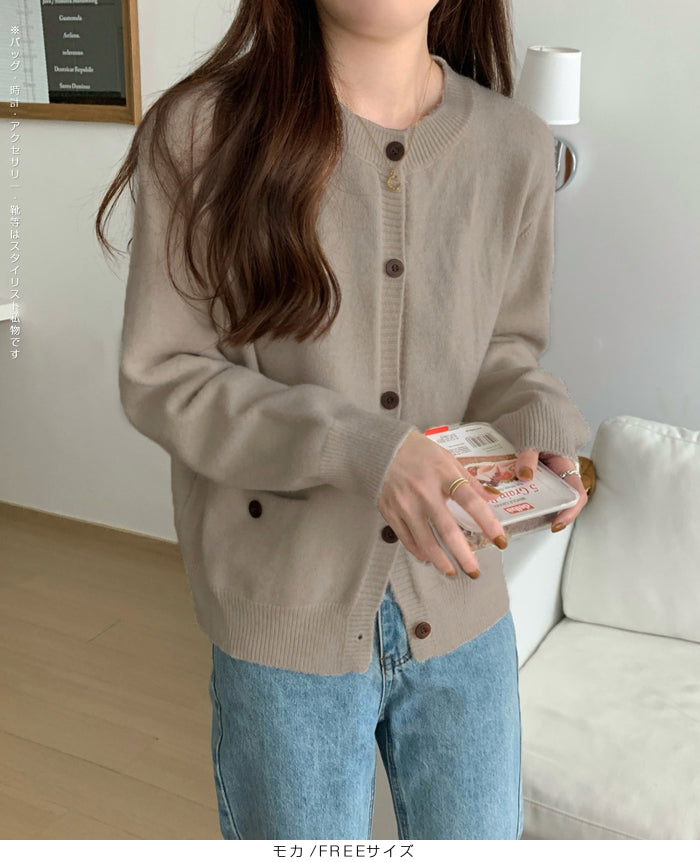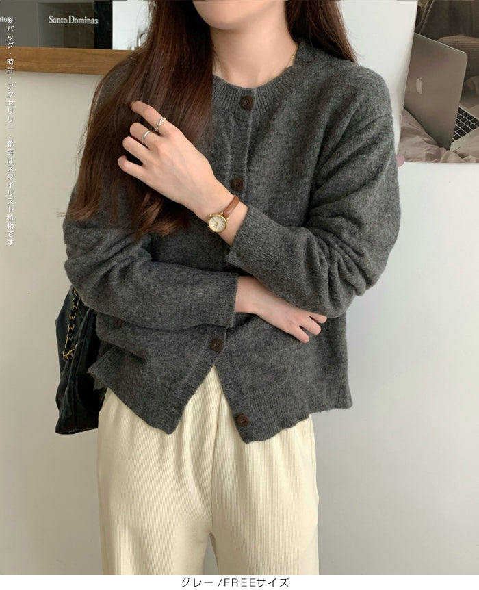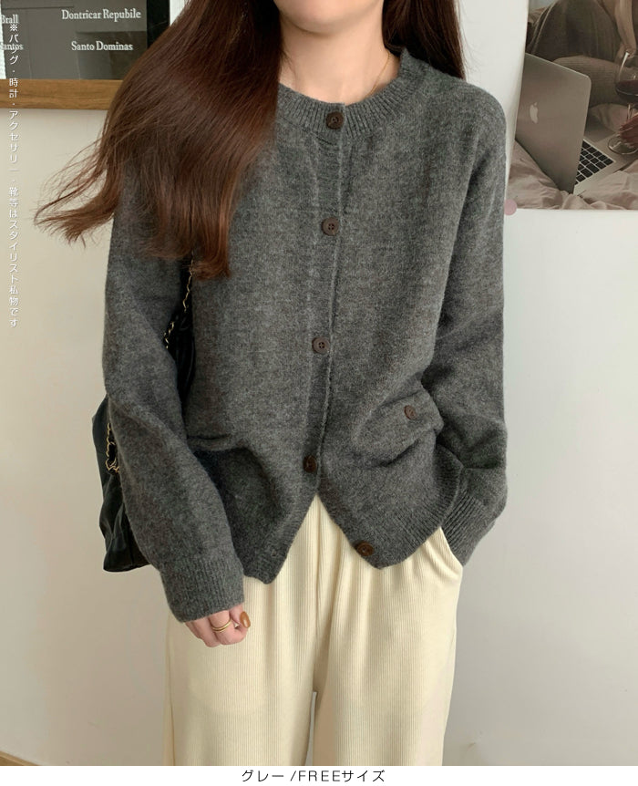 シンプルクルーネックニットカーディガン - FREEサイズ / グレー ...は取り寄せ中で入荷次第発送します。