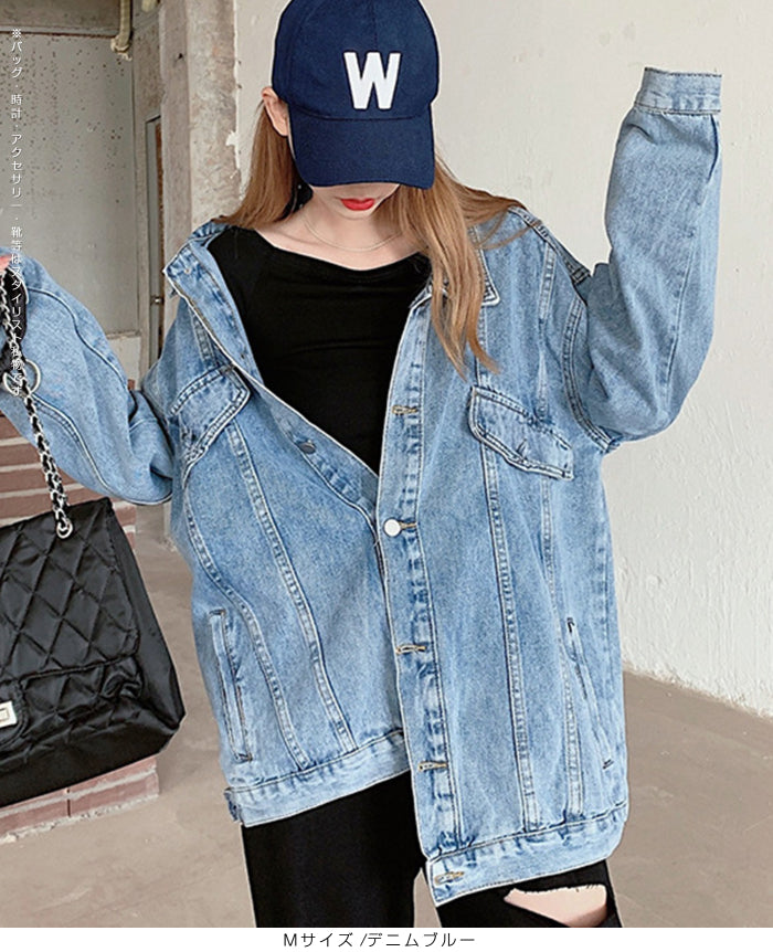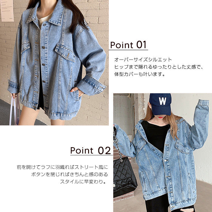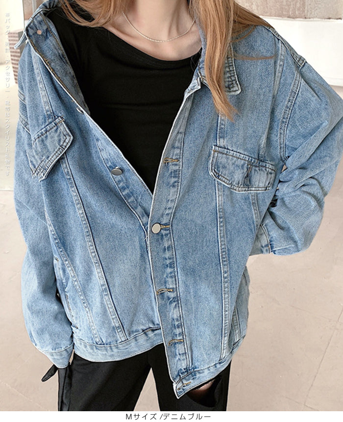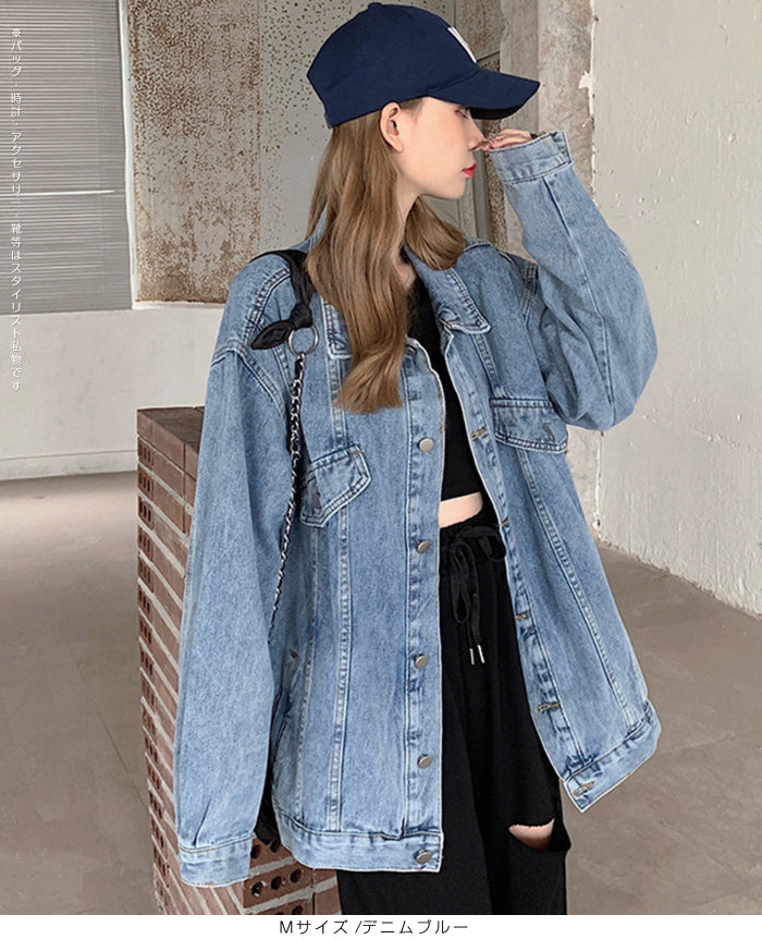トレンドのオーバーサイズで抜け感のある一枚。 大人のカジュアルスタイルに欠かせないデニムジャケット(Gジャン)です。 ドロップショルダーとヒップまで隠れるビッグシルエットで、 Tシャツやスウェットの上からざっくり羽織るだけで“こなれ見え”。 フロントボタン仕様で着脱スムーズ、 胸フラップ風ディテール+両サイドポケットで実用性も◎。 春・秋はライトアウターとして、 冬はフーディに重ねてロングシーズン活躍します。 デイリー・通勤・旅行まで幅広いシーンで使える、 使い勝手抜群のレディースデニムアウター。 《商品ポイント》 オーバーサイズ×ビッグシルエット:体型カバーしつつ今っぽい抜け感。 ドロップショルダー:肩線を落として華奢見え&レイヤードがしやすい。 ヒップまで隠れる丈感:バランスが取りやすくパンツとも好相性。 実用派ポケット:両サイドにハンドポケット、胸にフラップ風ディテール。 ロングシーズン対応:春・秋はアウター、冬はニット/スウェットの上に重ね着。 《デザイン・シルエット》 ゆったりした肩落ちデザインで抜け感をプラス 程よい厚みのデニム素材で着心地も軽やか ヒップラインをカバーする丈感で、スタイルアップ効果も 《コーディネート提案》 カジュアルに:Tシャツ×スニーカーで定番デニムコーデ 大人っぽく:タイトスカートやワンピースに羽織ればこなれ感UP ストリート風に:ワイドパンツやスウェットパンツと合わせて旬顔スタイル 季節の変わり目に:ニットやフーディーに重ねて防寒アウターとして 《サイズ・カラーバリエーション》 サイズ:S/M/L カラー:デニムブルー 《素材・機能性》 ・素材:コットン65%、ポリエステル35% ・透け感:なし ・伸縮性:なし ・厚み:普通(春〜秋に◎) |