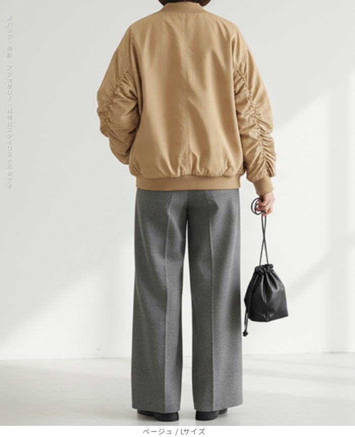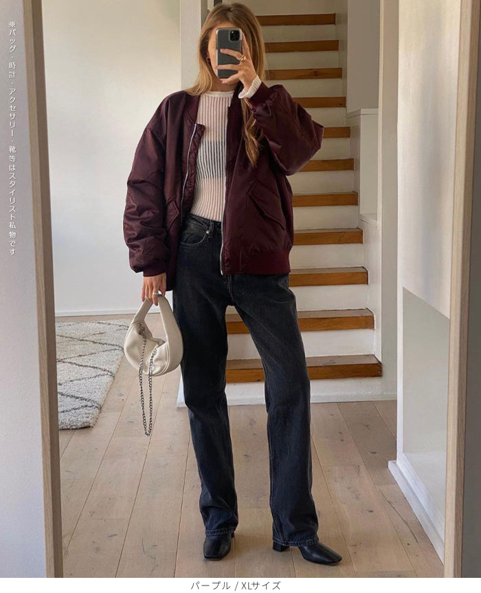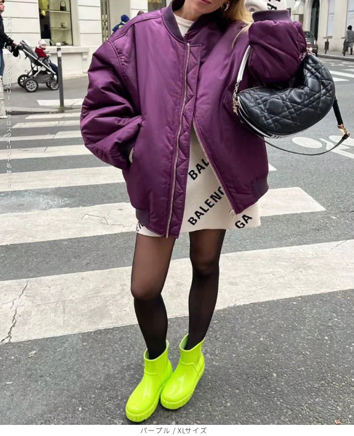 ゆったりスタジアムジャンパー 軽くてあたたかい中綿素材を使用したスタジアムジャンパー。 ゆったりとしたシルエットで、 体型カバーも叶えつつストリート感のある着こなしに。 カジュアルにもモードにも合わせやすく、 秋冬のデイリーアウターとして大活躍の一枚です。 《商品ポイント》 軽量中綿でしっかり防寒しながらも軽い着心地 ビッグシルエットでルーズに着られ、体型カバーも◎ 便利なポケット付きで実用性も抜群 Vネック × ジップデザインで顔まわりをすっきり見せ ストリートテイストのトレンド感あるスタイルに仕上がる一着 《デザイン・シルエット》 ゆったりとしたオーバーサイズでリラックス感のあるシルエット Vネックラインが抜け感を演出し、レイヤードコーデにも最適 ヒップが隠れる中長丈でバランス良く着こなせる くしゅっと感のある袖デザインでさりげないこなれ感をプラス 《コーディネート提案》 デニムやスウェットパンツと合わせて王道ストリートコーデに タイトスカート・ショートパンツで女性らしいスタイルにアレンジ フーディーやニットをインしてレイヤードを楽しむ冬コーデに ワイドパンツと合わせて今っぽいゆる×ゆるコーデもおすすめ 《サイズ・カラーバリエーション》 サイズ:S / M / L / XL カラー: パープル / ブラック / ベージュ / ピンク 《素材・機能性》 素材(表地):ポリエステル 中綿:TC(ポリエステル・コットン) 厚さ:普通 透け感:なし 伸縮性:なし 特徴:軽量中綿であたたかく、防寒性と着心地を両立 |