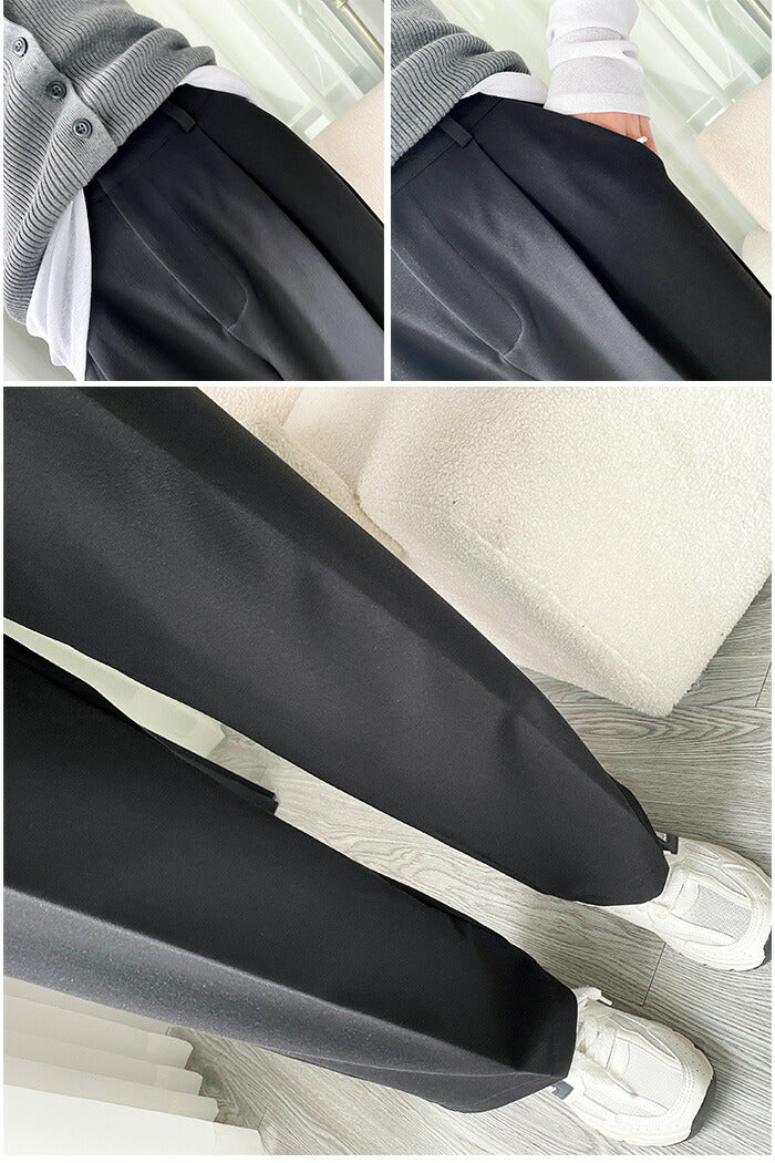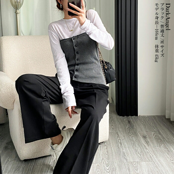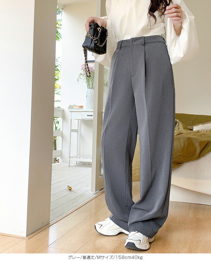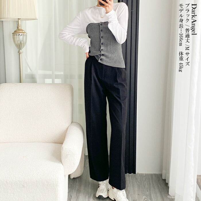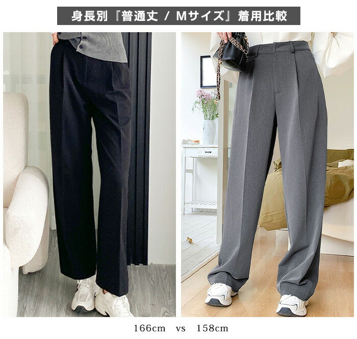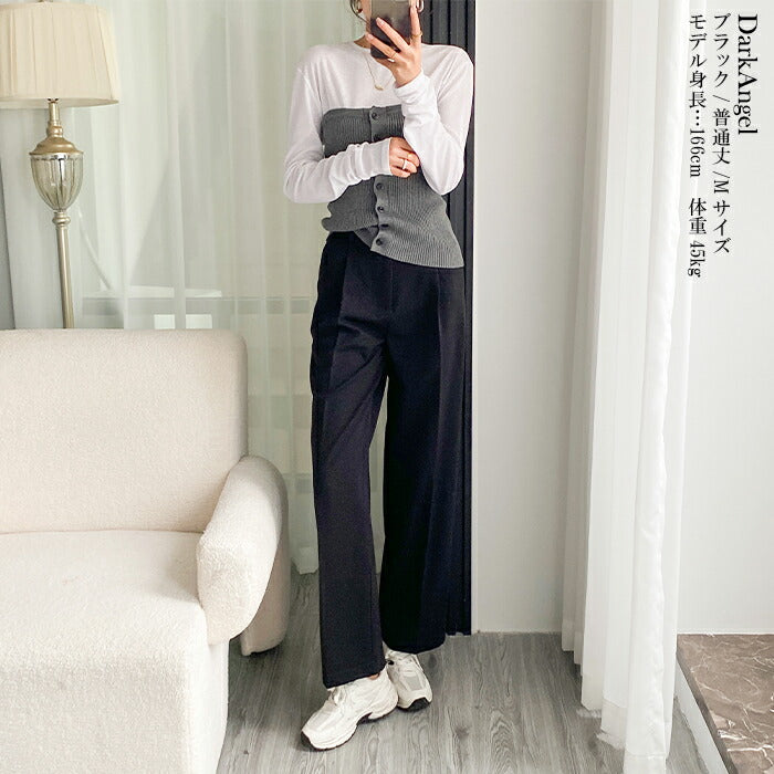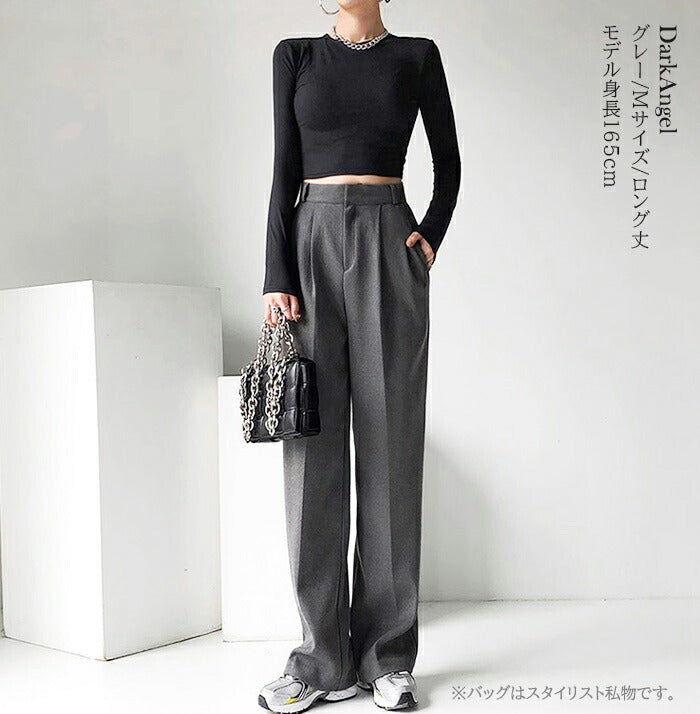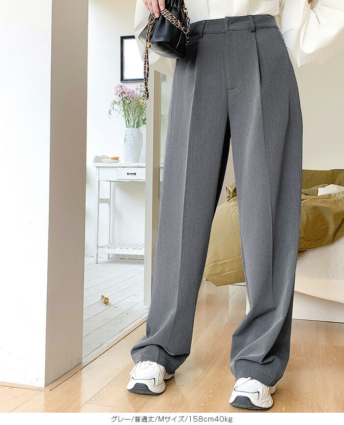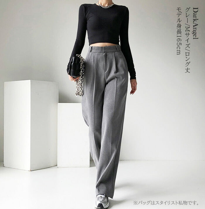 理想の丈感が選べる! あなたにぴったりの美脚パンツ スニーカーと相性抜群の【普通丈】と、 脚を長く美しく見せる【長め丈】の2タイプをご用意! 自分のスタイルやコーデに合わせて、お好みのシルエットを選べます。 ハイウエスト&センタープレスデザインが、 脚をまっすぐ綺麗に見せてスタイルアップ効果◎ どの角度から見ても美しく決まる絶妙なシルエットです。 カジュアルにもキレイめにも合わせやすく、オン・オフどちらでも活躍! トップスやシューズ次第でさまざまなスタイリングが楽しめる、 持っておきたいマストアイテムです。 |