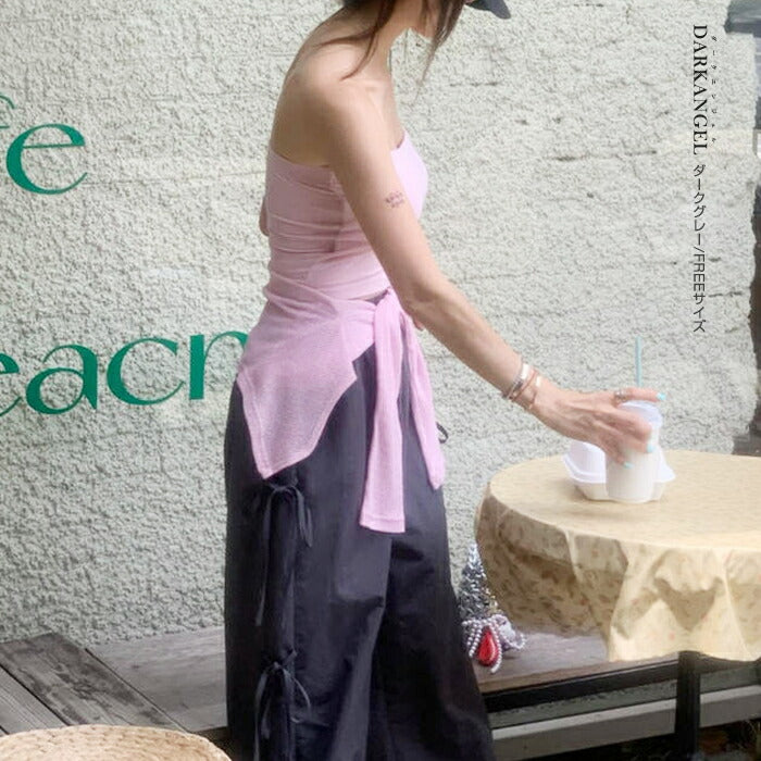 サイドリボンワイドパンツ