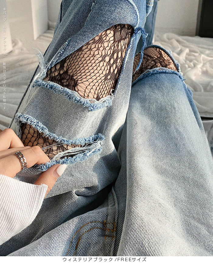 06花柄&リボンレースストッキングパンツ - ウィステリアブラック / ワンサイズ ...は取り寄せ中で入荷次第発送します。
