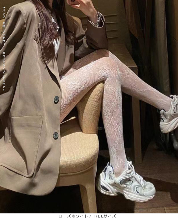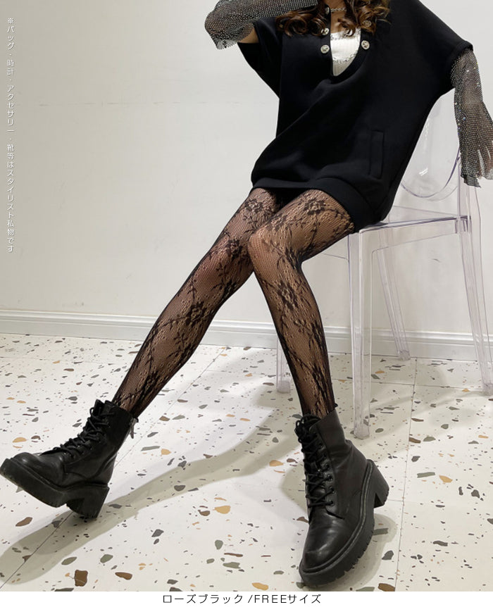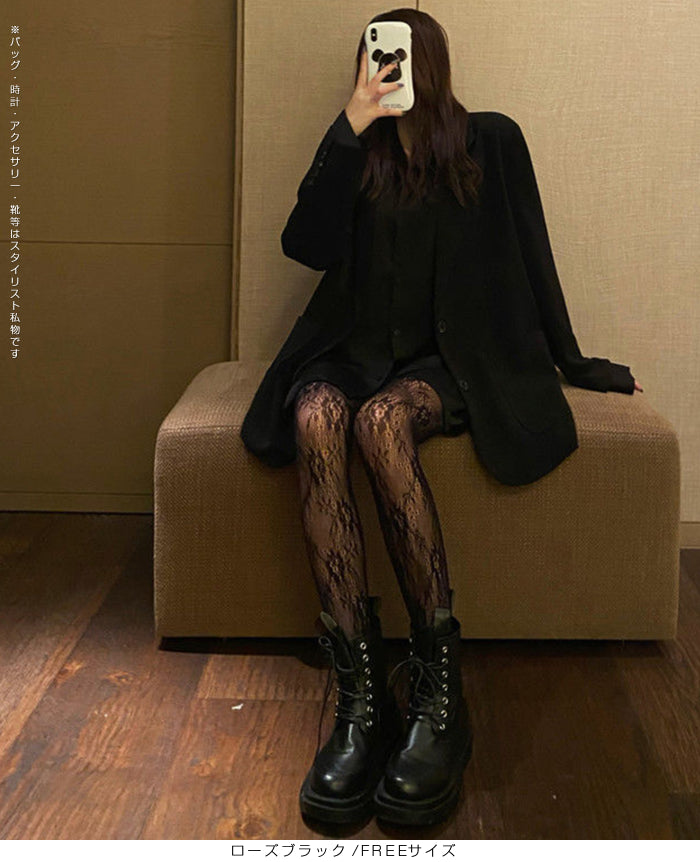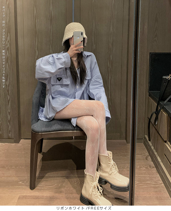 【 花柄&リボンレースストッキング 】 華やかな花柄とリボンモチーフをあしらったレースストッキング。 繊細な透け感が脚を美しく引き立て、 コーディネートに女性らしいアクセントをプラスします。 伸縮性に優れたフィット感で快適に着用でき、 パンツやスカートからさりげなく覗かせるだけで、 おしゃれ度が一気にアップ。 カジュアルからモード、フェミニンまで 幅広く活躍する万能アイテムです。 《商品ポイント》 花柄×リボンの華やかなレースデザイン 美脚効果を高める透け感シルエット 程よい伸縮性で快適な履き心地 デニムやスカートとのレイヤードに映える モード感とフェミニンさを兼ね備えたデザイン 《デザイン・シルエット》 全体に広がる花柄とリボンレースが視線を惹きつける、 上品で可憐なデザイン。 肌が程よく透けることで、女性らしい美脚ラインを演出します。 網目の細かさと柄の配置により、 脚をほっそり見せる効果も期待できるシルエット。 《コーディネート提案》 ダメージデニムからレースを覗かせてストリート感ある着こなしに ミニスカートやショートパンツと合わせて脚見せコーデのアクセントに オーバーサイズジャケットやシャツとの組み合わせでモードに シンプルワンピースに合わせて一気に華やぎをプラス ブーツやローファーと合わせればカジュアルにもフェミニンにも対応 《サイズ・カラーバリエーション》 サイズ:FREEサイズ カラー:ウィステリアブラック / ウィステリアホワイト / リボンブラック / リボンホワイト / ローズブラック / ローズホワイト 《素材・機能性》 ・素材:ポリエステル100% ・透け感:あり ・伸縮性:あり ・厚み:薄手 |