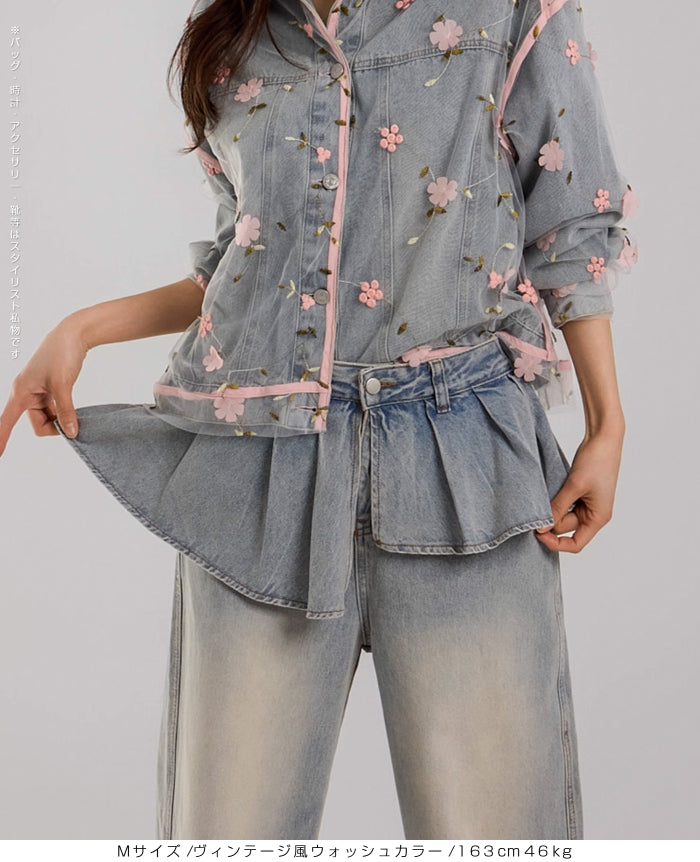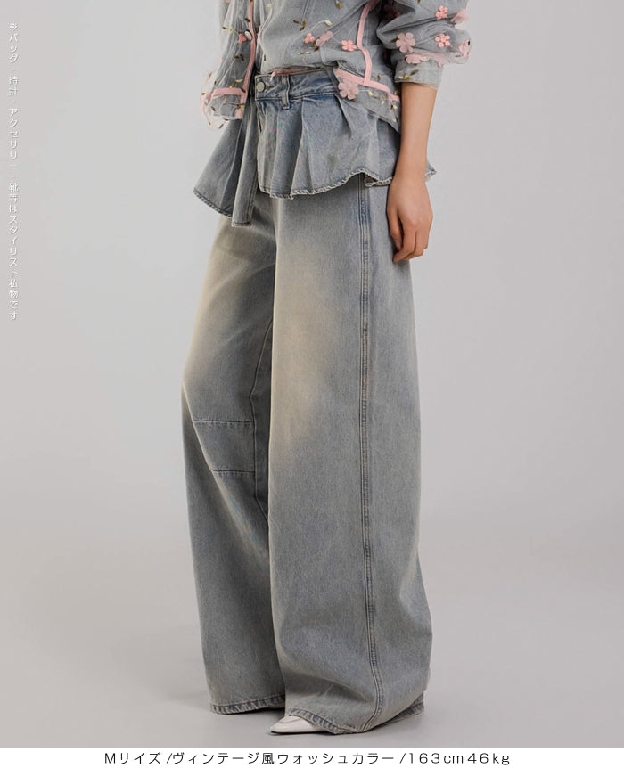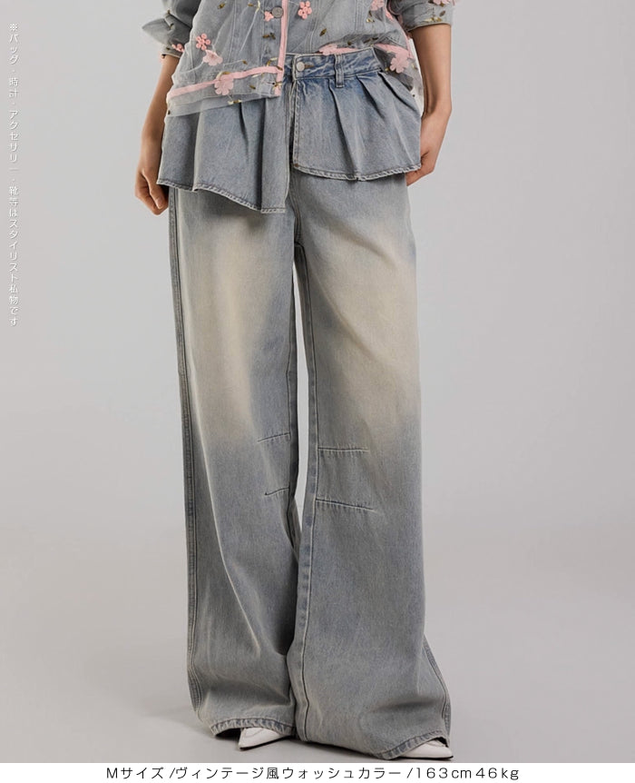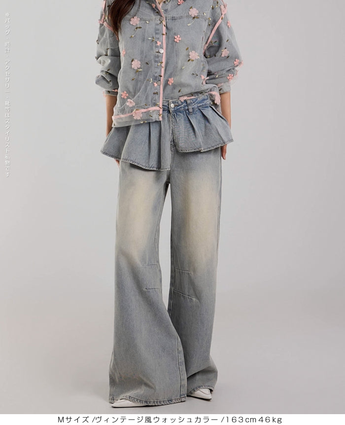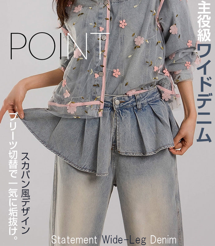 【ヴィンテージウォッシュスカート風デニムワイドパンツ】 スカート風デザインとワイドパンツを融合させた、 存在感抜群のデザインデニム。 ウエストのプリーツ切替がレイヤード風の立体感を演出し、 個性的ながらもこなれたおしゃれ感を楽しめます。 ヴィンテージライクな ウォッシュ加工が程よい抜け感をプラスし、 カジュアルからモードまで幅広く活躍。 ゆったりとしたシルエットで体型カバーも叶い、 普段のデニムスタイルに差をつける一枚です。 |