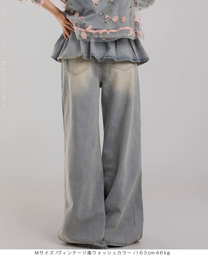 03size | コットン | スカート風デニムワイドパンツ - Sサイズ / ヴィンテージ風ウォッシュカラー ...は取り寄せ中で入荷次第発送します。