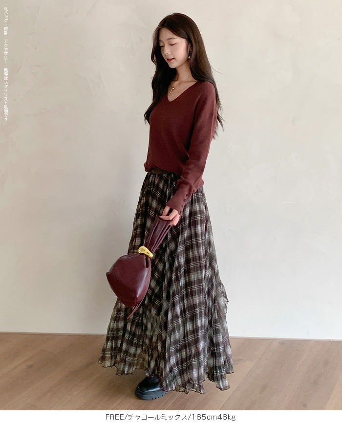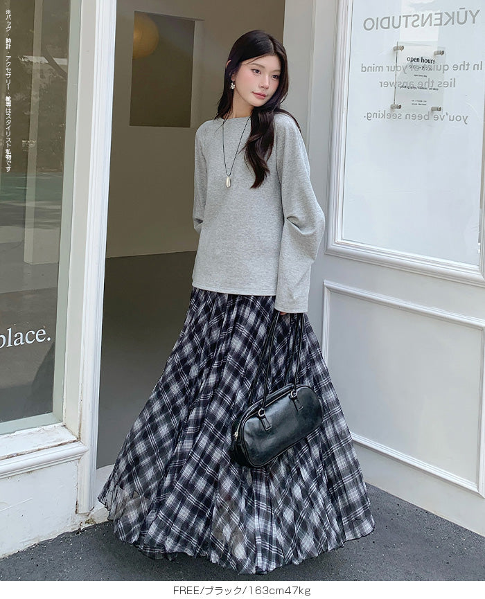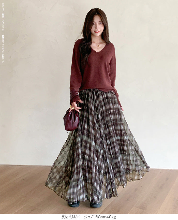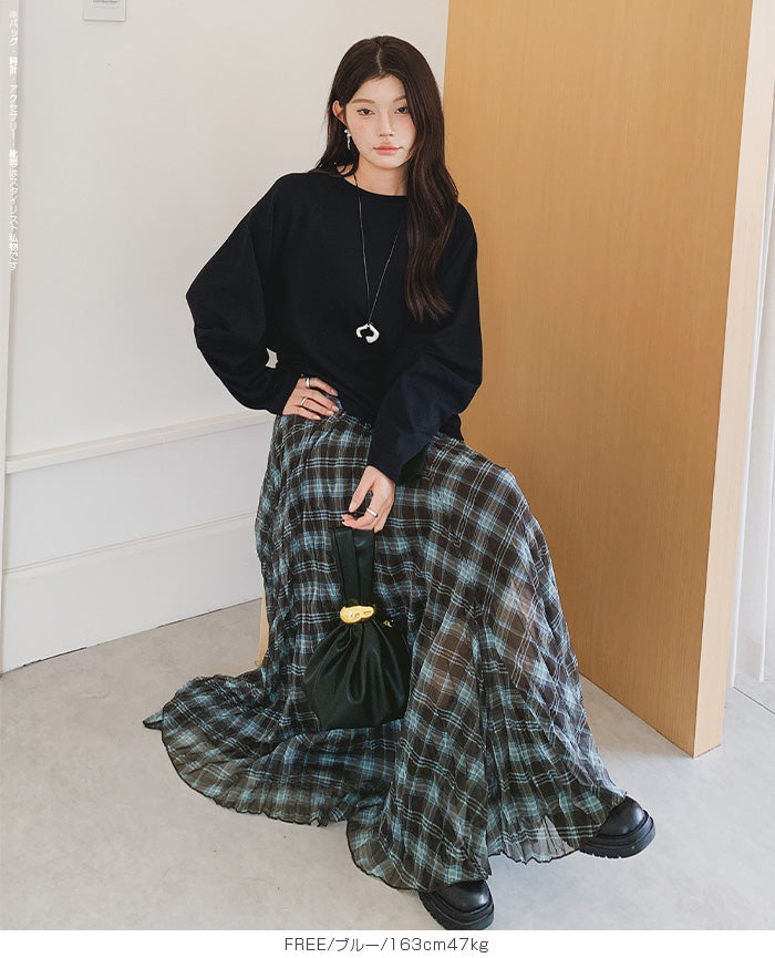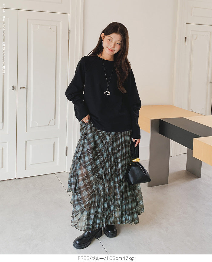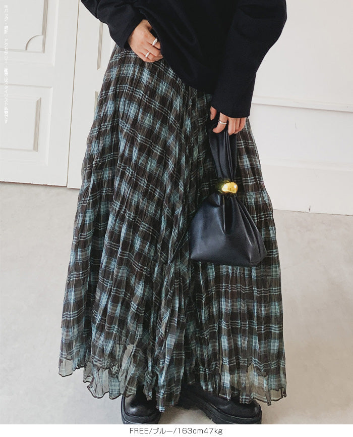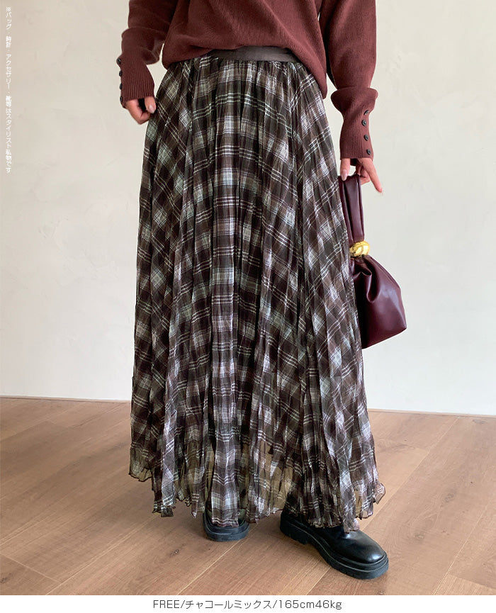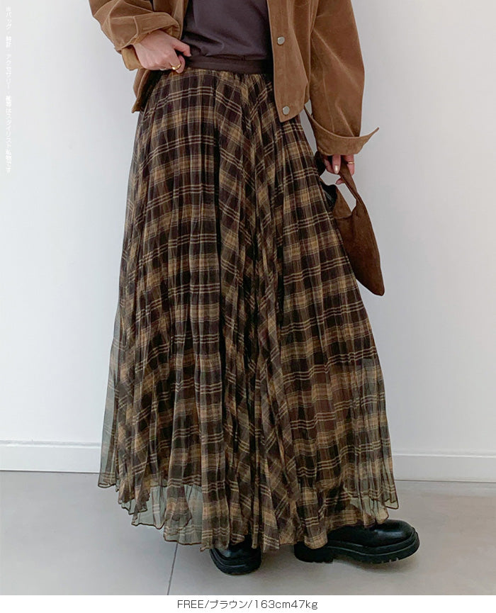絶妙な透け感が魅力のロング丈プリーツスカート。