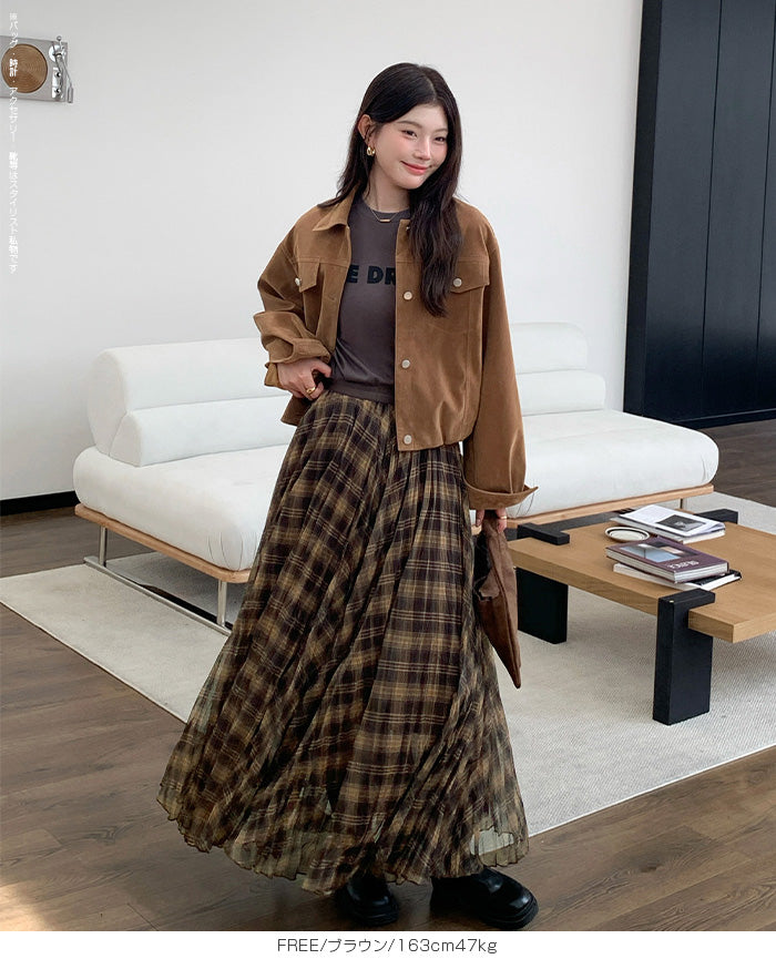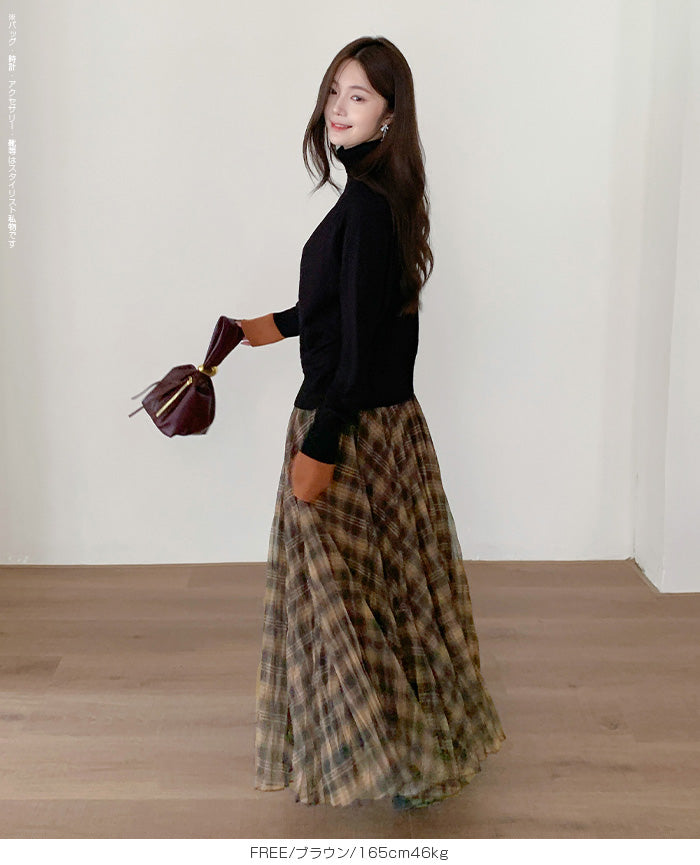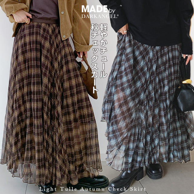 繊細なチュール生地にシックなチェック柄を重ねた、