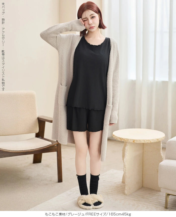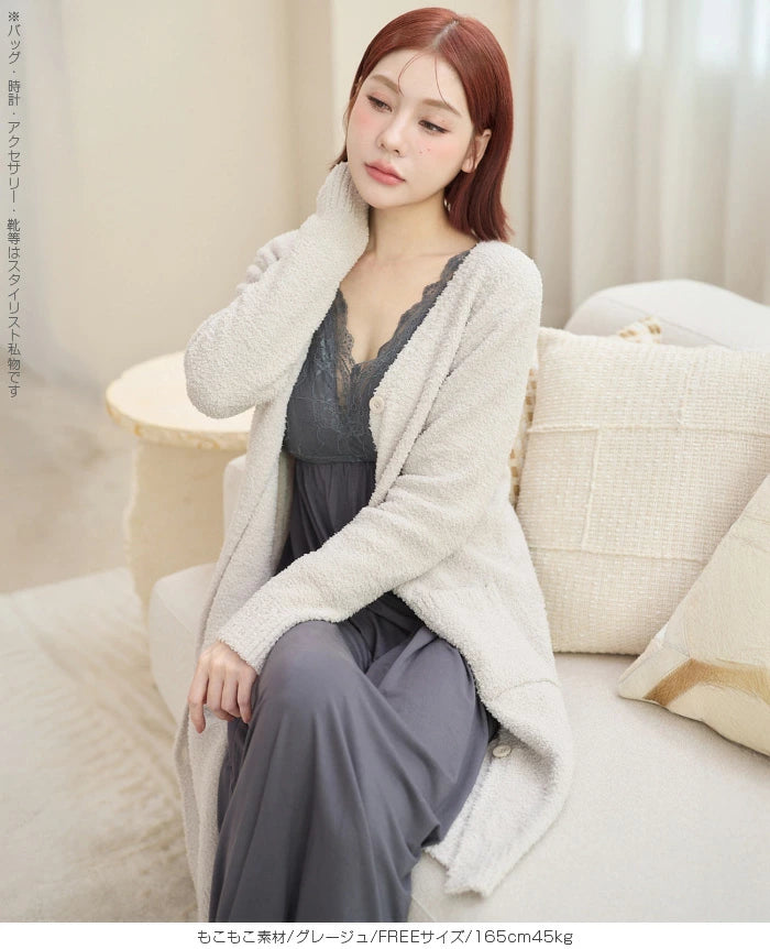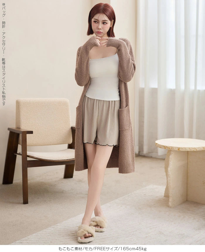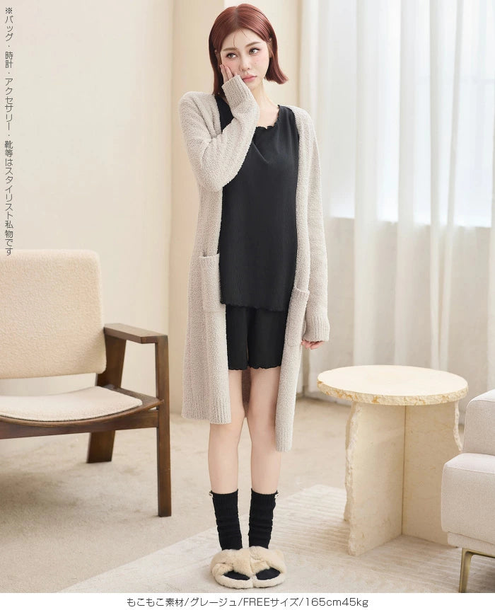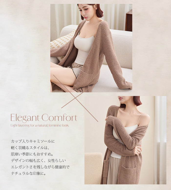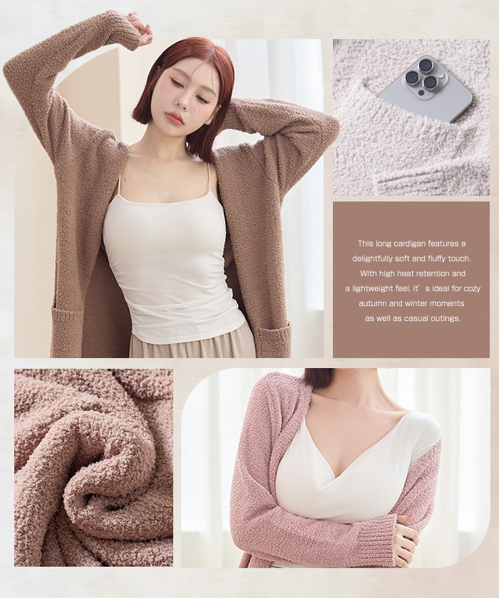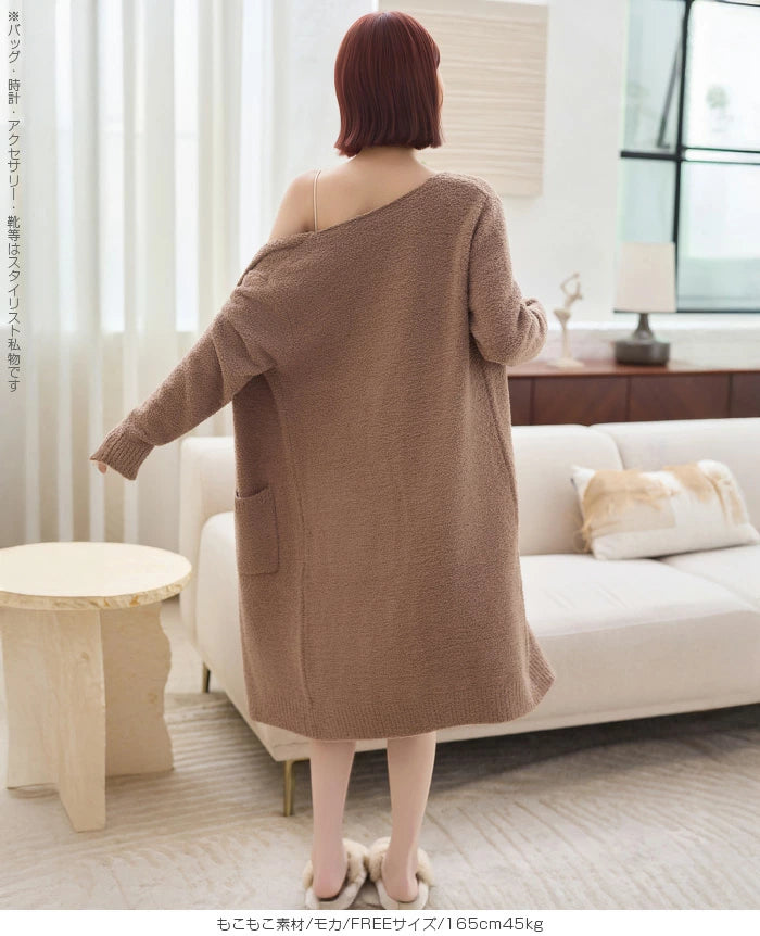 【もこもこカーディガン】 ふんわり柔らかな肌触りが魅力のロングカーディガン。 保温性が高く軽やかな着心地で、 秋冬のリラックスタイムからワンマイルの お出かけまで幅広く活躍します。 シンプルな無地デザインに、便利なポケットをプラス。 デイリーに着まわしやすい万能アイテムです。 《商品ポイント》 ふわもこ素材で暖かく、やみつきになる肌心地 膝丈のロングデザインで体型カバーにも◎ 両サイドに便利なポケット付き シンプルな無地でコーディネート自在 軽量で羽織りやすくデイリーに活躍 《デザイン・シルエット》 膝下までしっかりカバーできるロング丈 Vネックデザインで顔まわりをすっきり見せ ゆったりしたシルエットで着心地抜群 袖口と裾はリブ仕様で程よいフィット感 《コーディネート提案》 ワンピースに羽織ってフェミニンな大人スタイルに デニム×Tシャツに合わせてカジュアルコーデ キャミソールやルームウェアに羽織ってリラックスムードを演出 同色系でまとめて大人っぽいワントーンコーデ 寒い季節はタートルネックやニットと重ね着して暖かさ倍増 《サイズ・カラーバリエーション》 サイズ:FREEサイズ ・カラー:スモークピンク/グレージュ/モカ 《素材・機能性》 ・素材:ポリエステル100% ・もこもこで軽いのに暖かい生地感 ・なめらかでチクチクしにくい肌触り ・秋冬春とロングシーズン着用可能 ・洗濯しても型崩れしにくいイージーケア素材 |