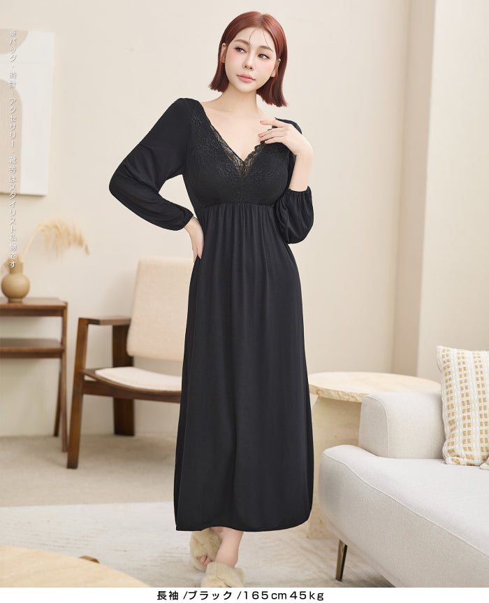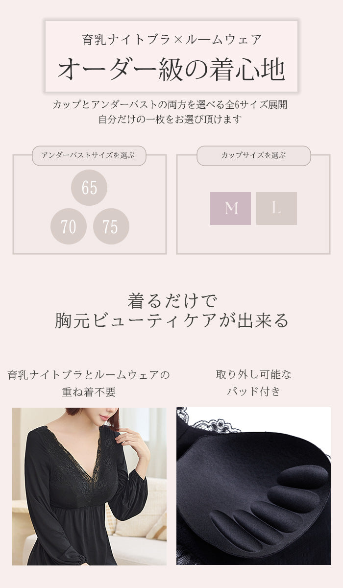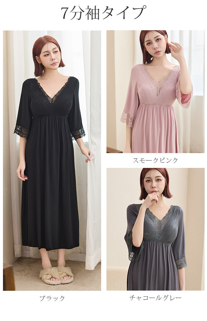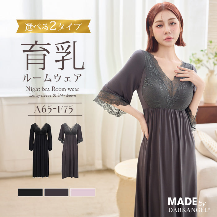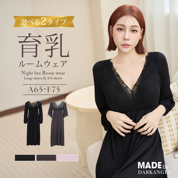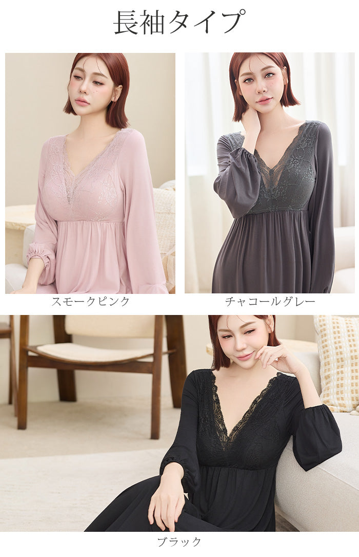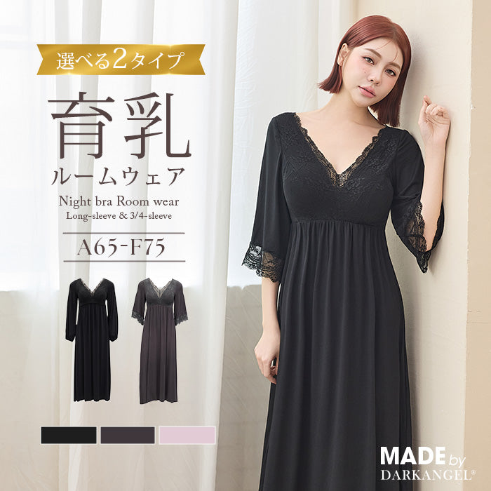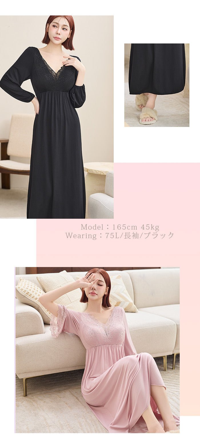 ナイトブラワンピース 長袖 半袖 マキシ丈 ナイトブラ ルームウェア レディース ワンピース ナイトブラ一体型 カップ付き - 長袖 / 65M / ブラック ...は取り寄せ中で入荷次第発送します。