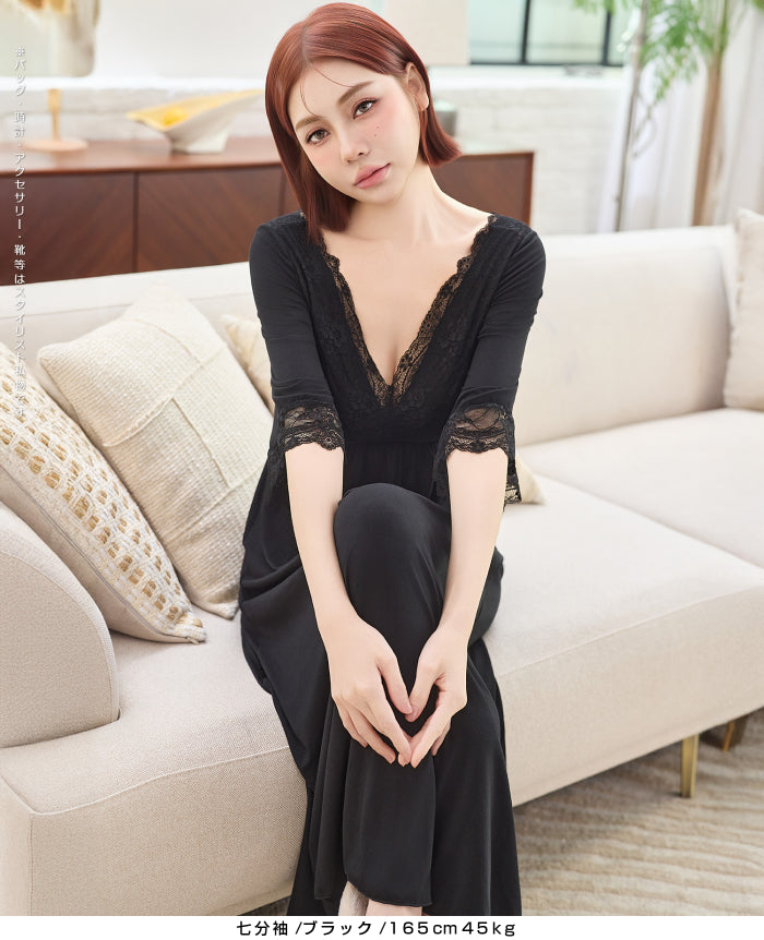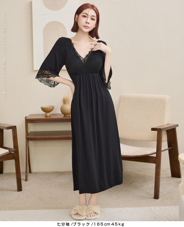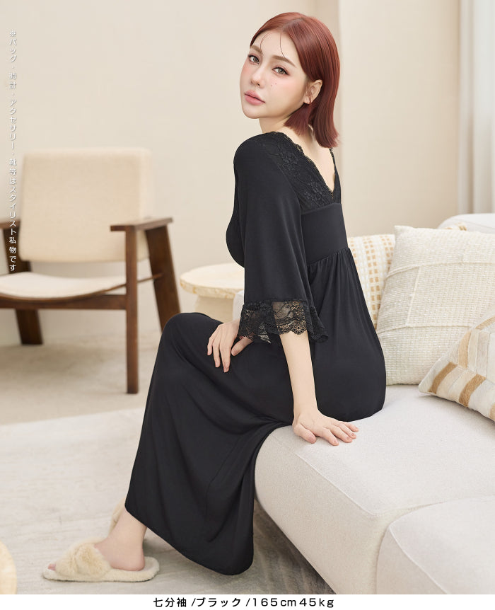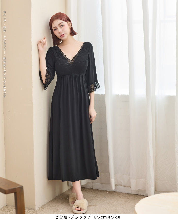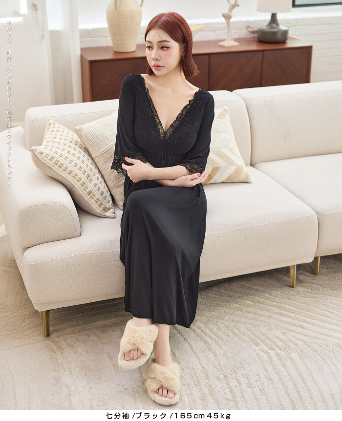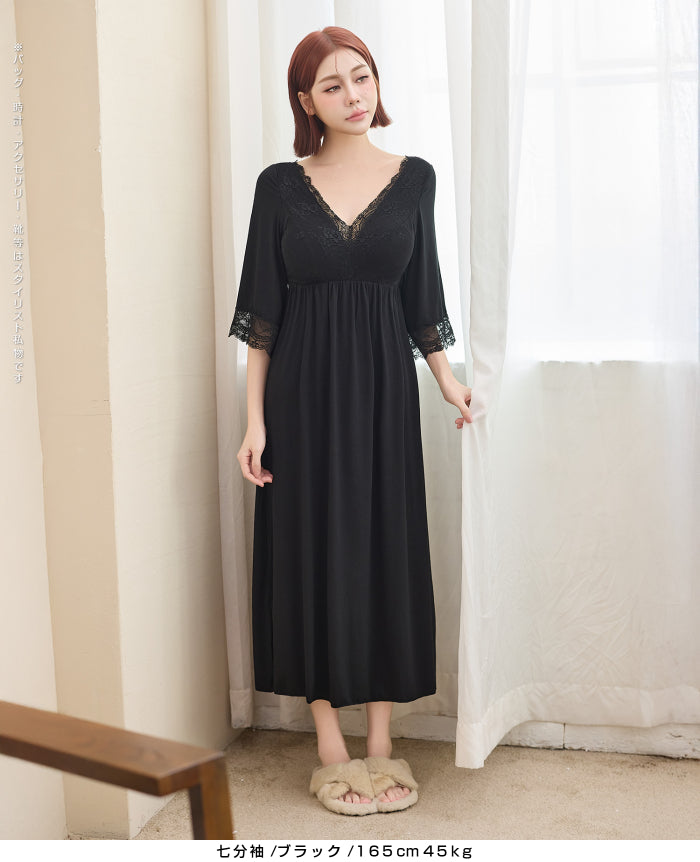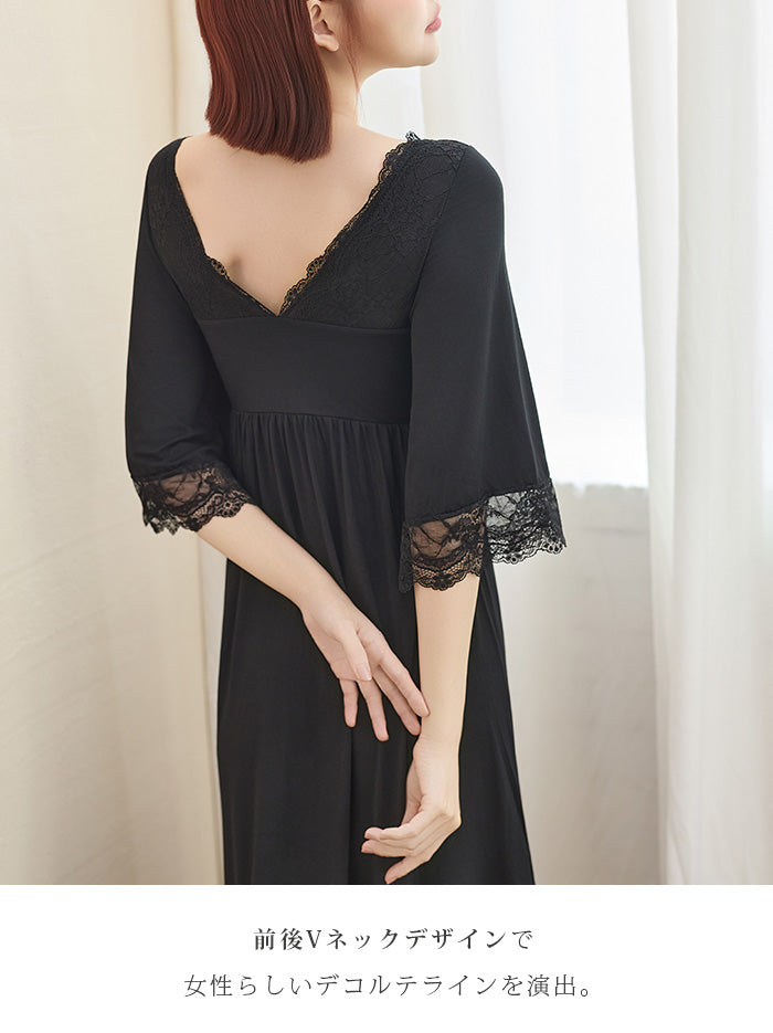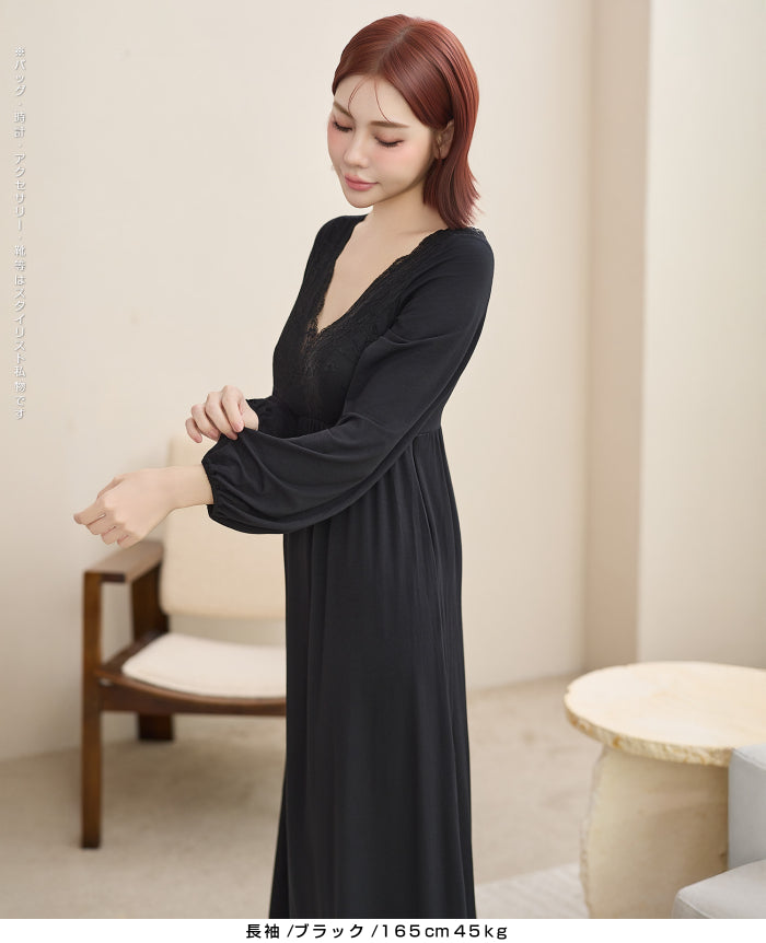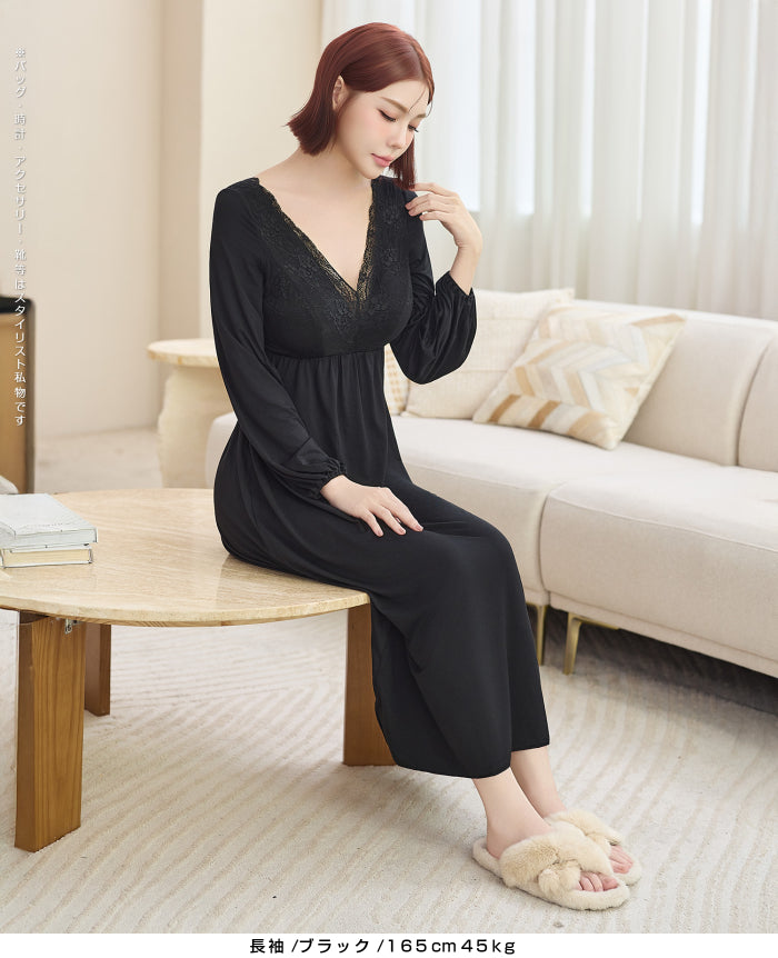ナイトブラワンピース 長袖 半袖 マキシ丈 ナイトブラ ルームウェア レディース ワンピース ナイトブラ一体型 カップ付き - 長袖 / 65M / ブラック ...は取り寄せ中で入荷次第発送します。