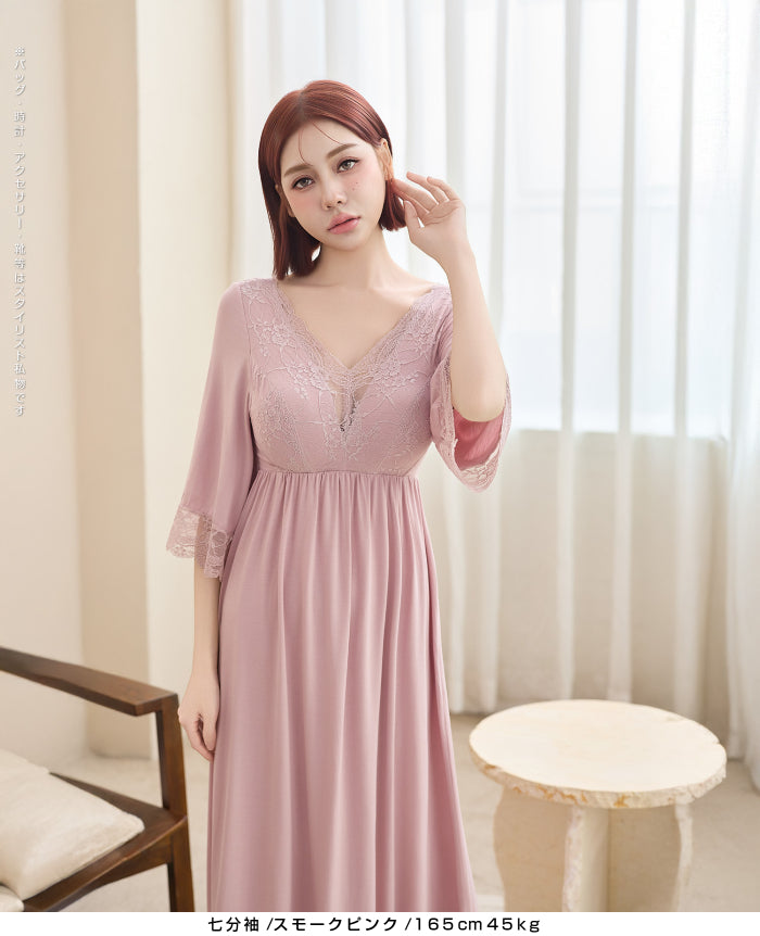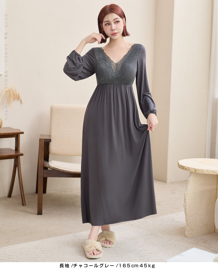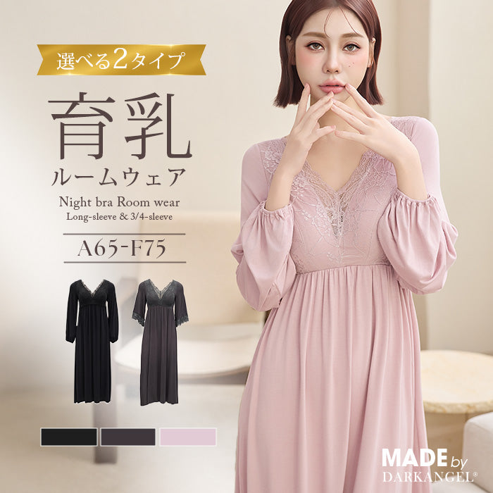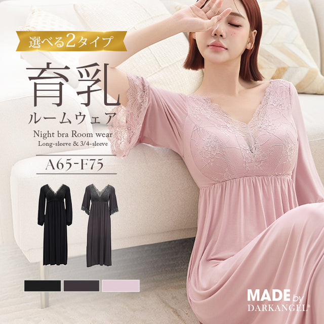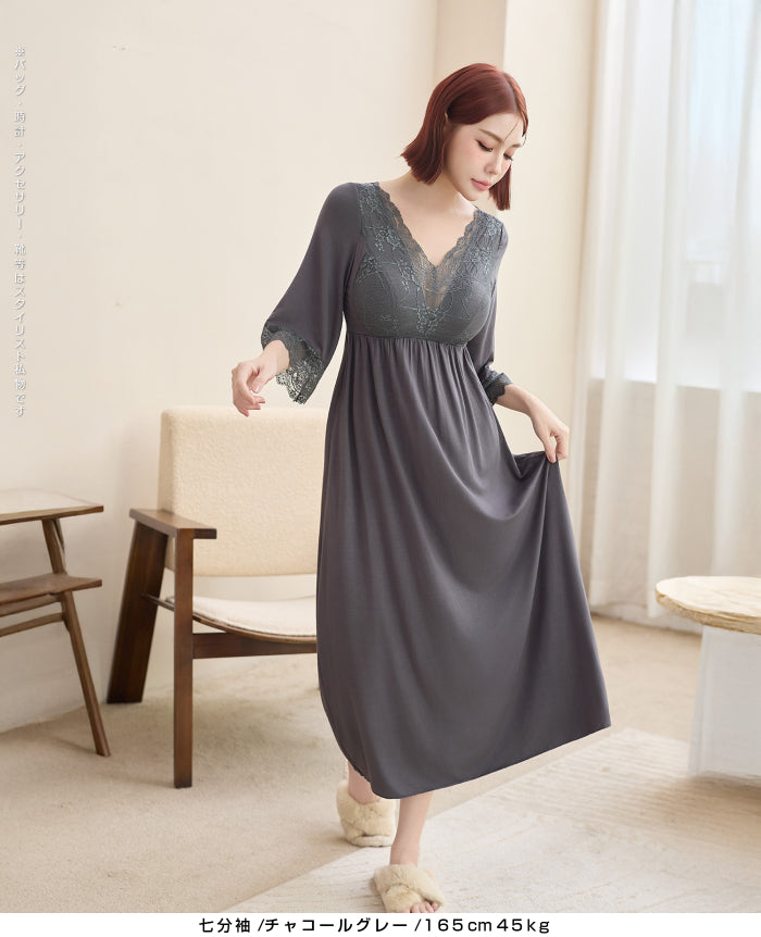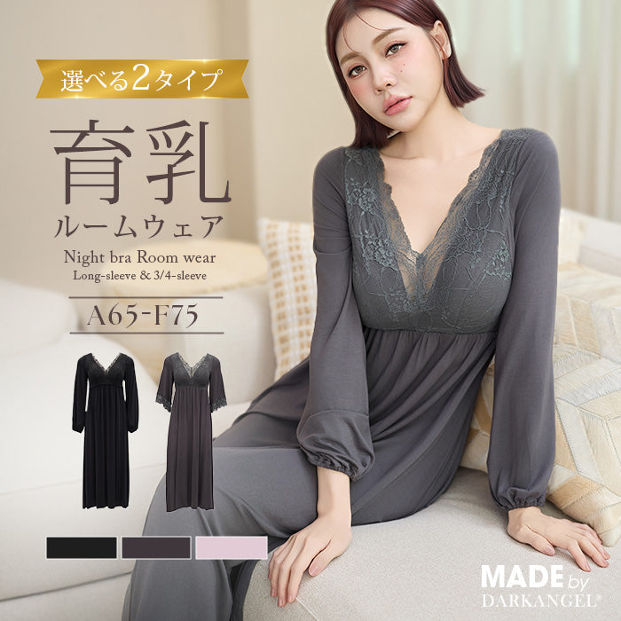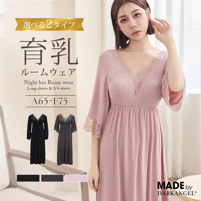 ナイトブラワンピース 長袖 半袖 マキシ丈 ナイトブラ ルームウェア レディース ワンピース ナイトブラ一体型 カップ付き