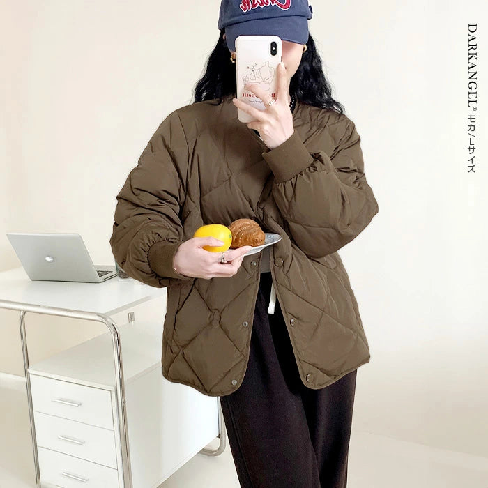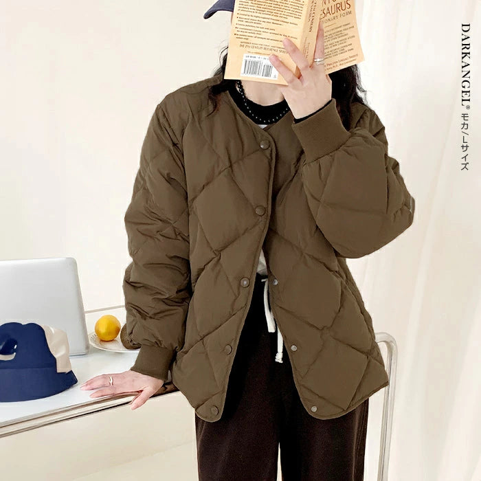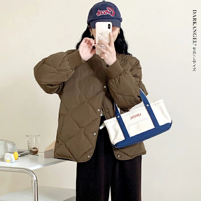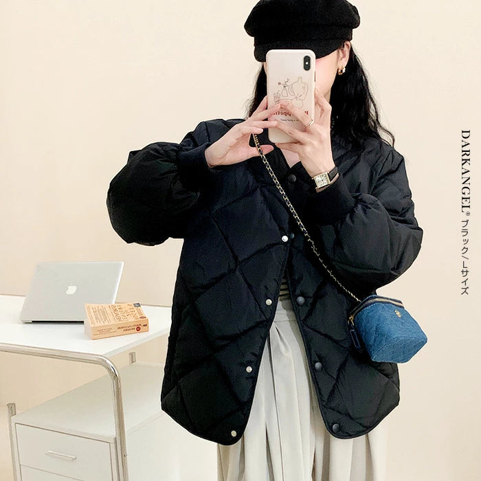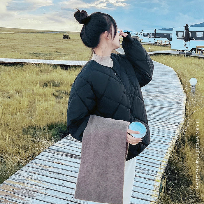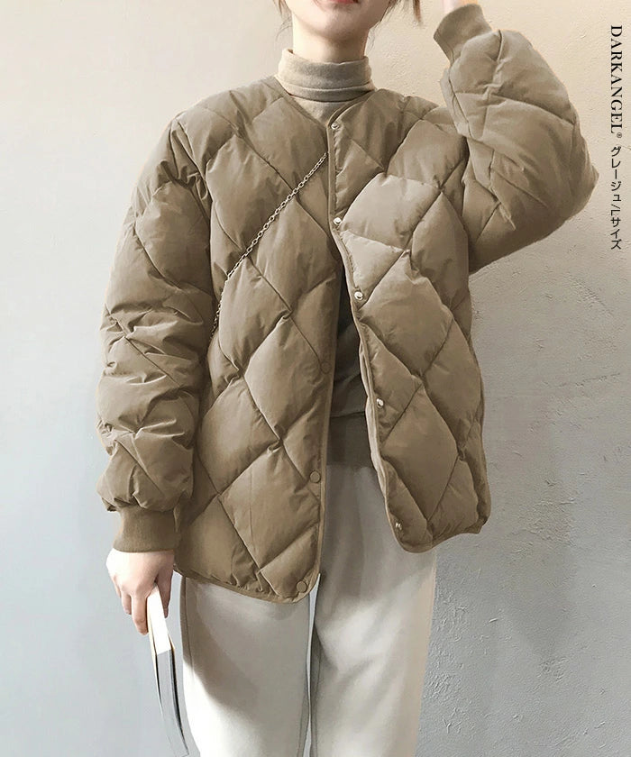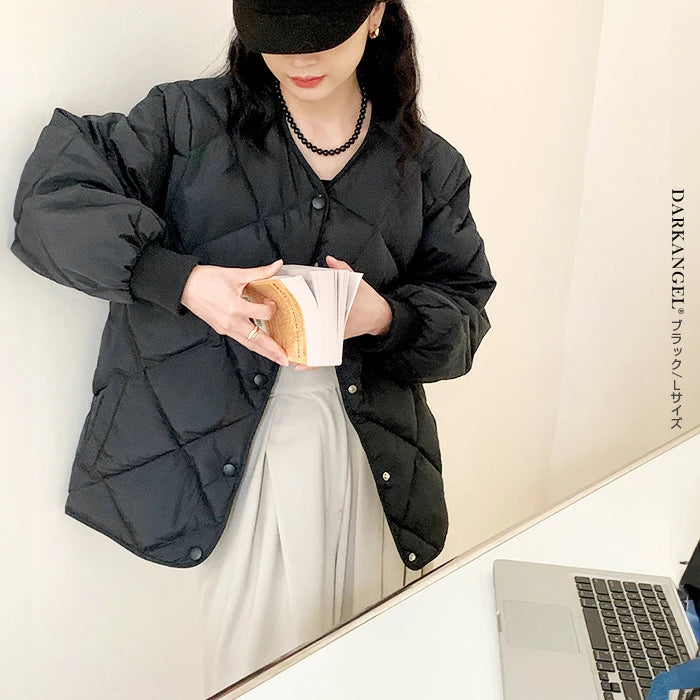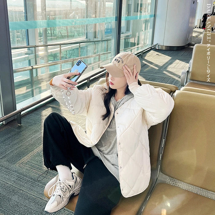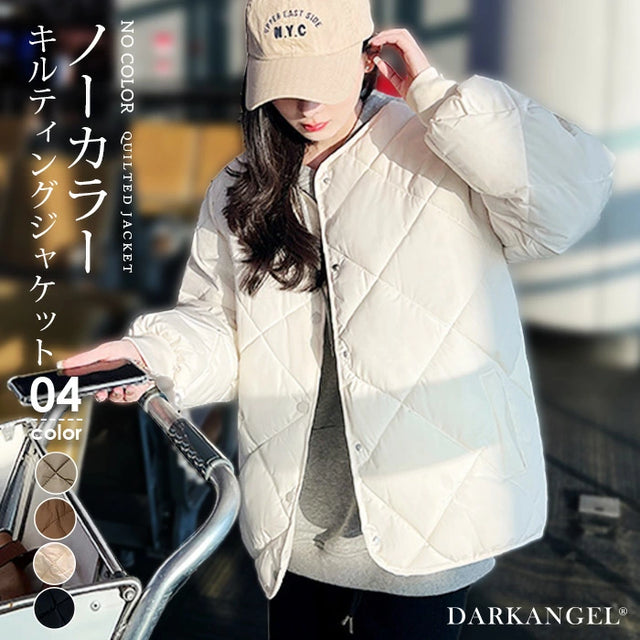 【 ノーカラーキルティングジャケット 】 ノーカラーのシルエットが顔周りをすっきりと見せ、 さまざまなスタイルにマッチするキルティングジャケット。 中綿が入っているので保温性があり、軽い着心地なのも魅力的です。 定番アイテムだからこそ、シンプルかつこだわりのディテールで 日常に馴染みやすく、コーディネートしやすいデザインにまとめました。 秋のアウターとしてはもちろん、冬にはコートのインナーとしても 大活躍してくれそうな着回し力抜群のアイテムです。 |