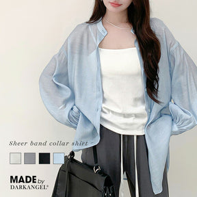 [関連ワード] 商品関連:シアーシャツ バンドカラーシャツ ボリューム袖 長袖シャツ レディース シャツブラウス ゆったりサイズ 体型カバー トップス レディース 春夏 トップス スリット入り 韓国ファッション風 透け感 シャツ シャツ オーバーサイズ 透け感 日焼け対策 冷房対策 20代 30代 40代 50代 おしゃれ お洒落 オシャレ かわいい 可愛い カワイイ ダークエンジェル だーくえんじぇる darkangel Dark Angel DARK ANGEL カラー展開: ブラック アイボリー グレー ライトブルー サイズ展開: FREE