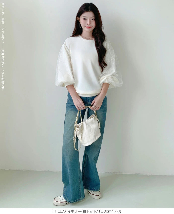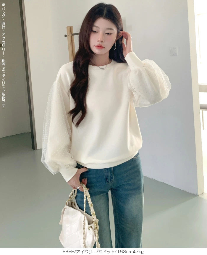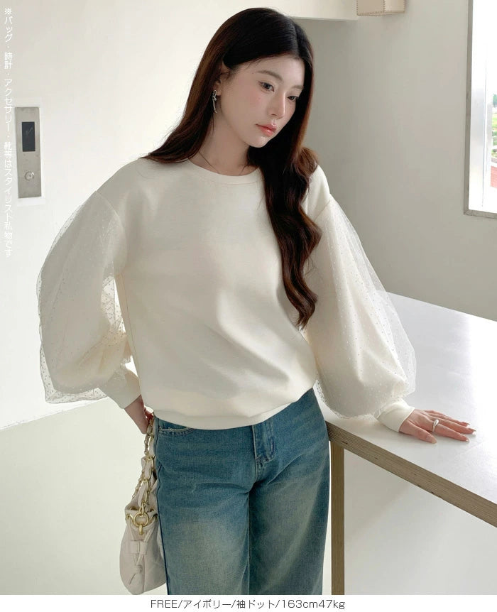 【 チュールドッキングスリーブプルオーバー 】 袖のチュール切り替えがトレンドライクなスウェット。 カジュアルになりがちなスウェットもフェミニントレンドに着こなせます。 ドロップショルダーの仕様でゆとりのあるサイズ感。 ボリュームのある袖がフェミニンムードを高めてくれます。 腰上の短丈でスタイルアップ効果抜群。 ハリのあるダンボール素材が高見えし、こなれ感のある印象に。 カジュアル派もフェミニン派にもおすすめの一着です。 《商品ポイント》 ハリ感のあるダンボール素材 立体的なシルエットをキープしやすく、ストレスフリーな軽い着心地。 ドット柄チュールスリーブ 透け感のあるチュールで華やかさをプラス。女性らしい雰囲気を演出。 ドロップショルダー&ボリューム袖 抜け感のあるリラックスシルエットで、トレンド感を楽しめる。 オン・オフ問わず活躍 デニムでカジュアルに、スカートでフェミニンに、パンツでオフィスカジュアルにと幅広いコーデに対応。 《デザイン・シルエット》 本体はミニマルなデザインでありながら、袖のチュール切り替えがポイント。 ドロップショルダーと立体的なダンボール素材により、ゆるやかな抜け感を演出。 ボリュームのある袖が1枚で存在感を放ち、シンプルながら印象的なスタイルに。 《コーディネート提案》 デニム合わせでカジュアルに、大人のこなれ感を演出。 タイトスカートやプリーツスカートで女性らしいフェミニンコーデに。 テーパードパンツやワイドパンツを合わせれば、きれいめなオフィスカジュアルにも◎。 アクセサリーや小物をプラスして、ちょっとしたお呼ばれやお出かけスタイルにも。 《サイズ・カラーバリエーション》 サイズ:FREE カラー:ブラック/アイボリー 《素材・機能性》 ・本体:レーヨン40%、ポリエステル55%、ポリウレタン5% チュール:ポリエステル100% ・透け感:ほとんど透けない ・伸縮性:あり(優しくフィット) ・厚み:普通 |