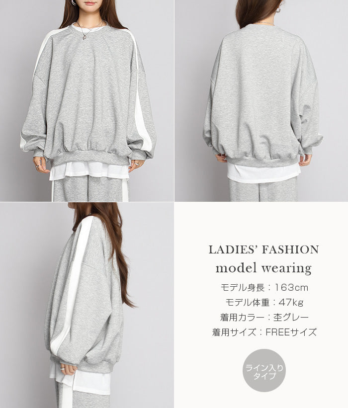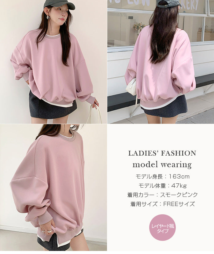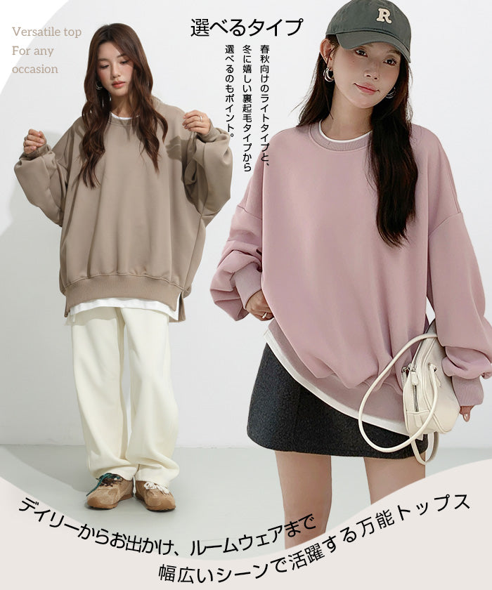 【カットソープルオーバー】 着るだけで“今っぽさ”が完成する、 選べる2タイプのスウェットプルオーバー。 【ライン入りタイプ(春秋)】は、 肩から袖にかけての配色ラインがアクセントになり、 シンプルなのに存在感のある一枚。 1枚でサマになる、洗練されたカジュアルスタイルが叶います。 【レイヤード風タイプ】は、 裾の偽2枚重ねデザインで、 着るだけでこなれ感たっぷりの重ね着風コーデが完成。 春秋タイプと、冬に嬉しい裏起毛タイプから選べます。 共通ポイントは、 たっぷりボリューム感のあるオーバーサイズシルエット。 ドロップショルダーで肩まわりはゆったり、 体のラインを拾わず、自然に体型カバー。 前後差のある着丈とサイドスリット入りで、 動きやすさと抜け感を両立。 ヒップが隠れる丈感にもこだわり、 レギンスやワイドパンツとも相性抜群です。 デイリー使いはもちろん、 お出かけ・通勤カジュアル・ルームウェアまで、 幅広いシーンで活躍する万能スウェット。 「ラクなのにちゃんとおしゃれ」を叶える、 この季節に手放せない一着です。 《商品ポイント》 選べる2タイプ(ライン入り / レイヤード風) 裏起毛あり・なしが選べる(レイヤード風タイプ) ゆったりシルエットで体型カバー 1枚でこなれ感のある重ね着風デザイン 配色ラインでスポーティーな印象(新追加タイプ) 偽2枚重ね裾でレイヤード完成(定番タイプ) サイドスリット入りで動きやすい レギンス・ワイドパンツと好相性 春・秋・冬とロングシーズン対応 《デザイン・シルエット》 ドロップショルダーで抜け感を演出 微コクーンラインのボリューム感 オーバーサイズ設計でリラックス感◎ ライン入りタイプ:縦ラインで細見え効果 レイヤード風タイプ:裾の重なりで奥行き感 サイドスリット入りで縦ラインを強調 《コーディネート提案》 レギンス+スニーカーで王道カジュアル ワイドパンツと合わせてセットアップ風 キャップ+ミニバッグで韓国風スポーティー シャツやロンTを中に仕込んでレイヤード強調 ブーツ合わせで秋冬の大人カジュアルにも◎ ロングスカートと合わせて女性らしく外しコーデ 《サイズ・カラーバリエーション》 サイズ:FREE(ゆったり設計・M〜L相当) タイプ:【ライン入り(春秋タイプ)】 カラー:杢グレー/ブラック/グレイッシュベージュ 【レイヤード風(春秋タイプ / 裏起毛タイプ)】 カラー: スモークピンク/ ピンク/ L・グレー/ ブラック/ グレージュ/ ブルー 《素材・機能性》 素材: ・春秋タイプ:コットン混スウェット生地 ・裏起毛タイプ:裏起毛スウェット生地(柔らか&保温) 機能性: 透けにくい シワになりにくい 肌触りやわらか 軽量でストレスフリー 保温性あり(裏起毛タイプ) お手入れ簡単(洗濯機OK) |