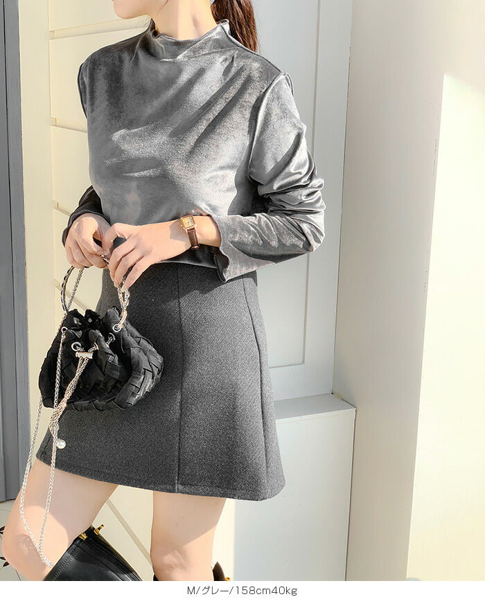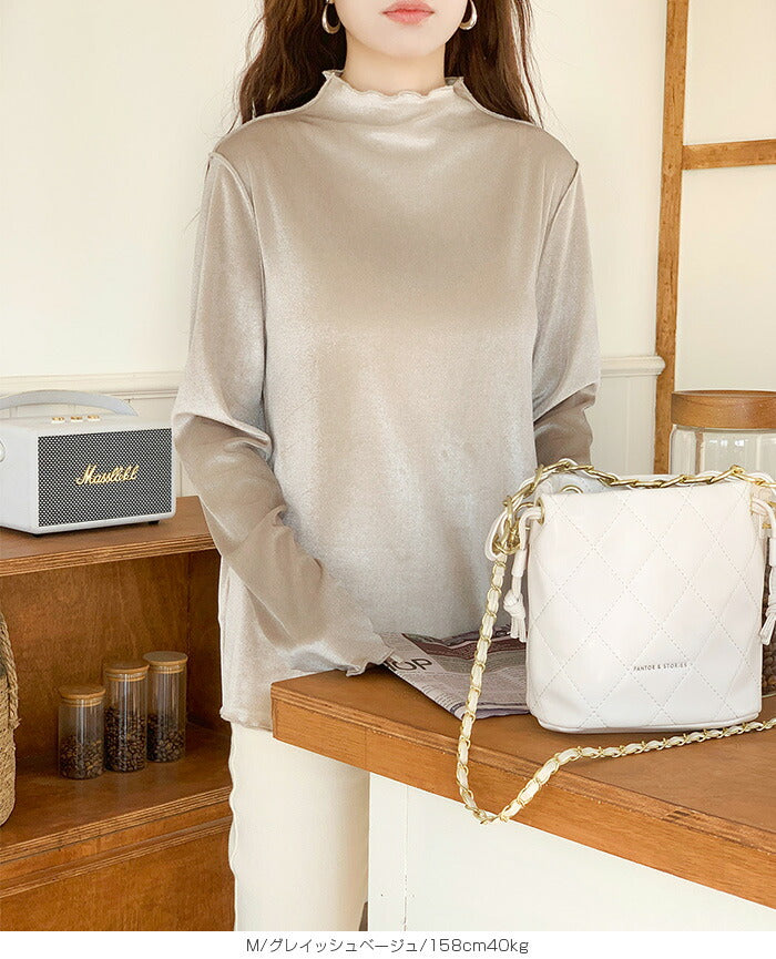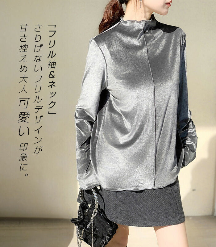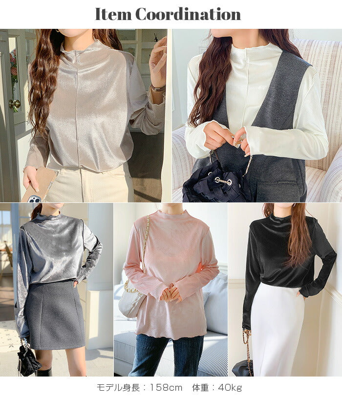 光沢感のある上品なベロア生地を使用した長袖カットソー。 素材: 柔らかなベロア素材で、 ふんわりとした着心地が魅力。 光の加減で表情が変わり、 シンプルながらも華やかな印象に仕上がります。 デザイン: 前後どちらでも着られるデザインだから、 スタイルのバリエーションが広がります。 ハイネックのフリルが女性らしさをプラスし、 どの角度から見ても美しいシルエットを演出。 カジュアルからキレイめまで、 幅広いスタイルにマッチする万能トップスです。 コーデ: デニムやスラックス、スカートとも合わせやすい絶妙な丈感。 1枚で主役級の存在感がありながら、 ジャケットやカーディガンとも好相性。 オフィスコーデやデートコーデにも活躍します。 |