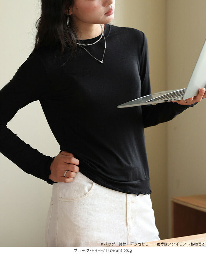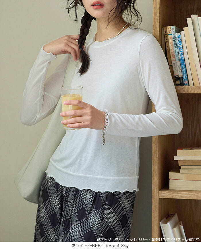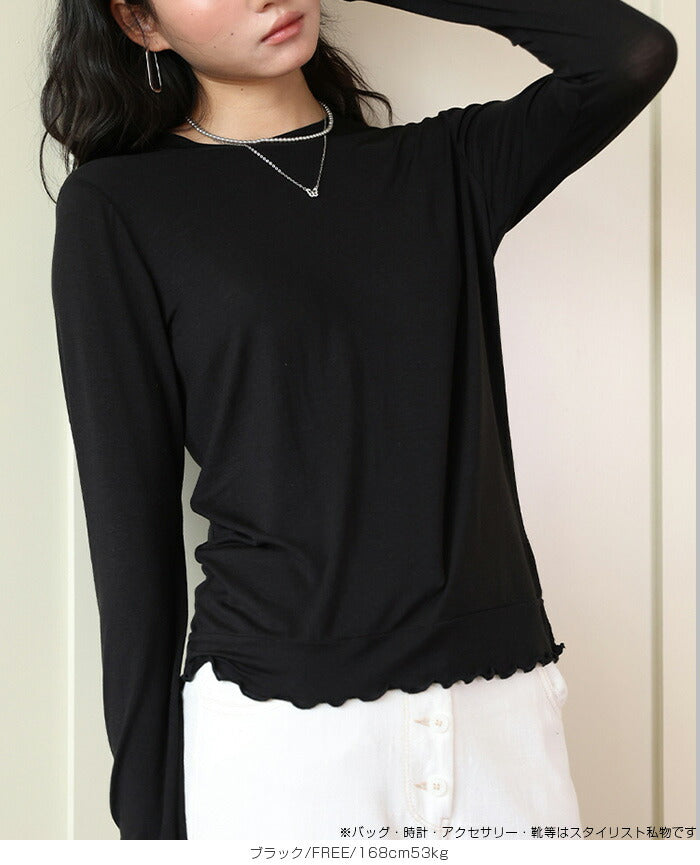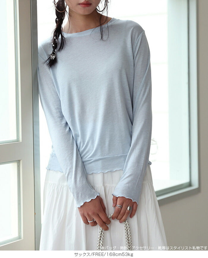 【 メロウシアーロンT 】 軽やかなシースルー素材のメロウシアーロンT。 大人カジュアルに最適。 長袖&ロング丈はレイヤードにぴったり! 使いやすいカラーでどんなボトムスにも合わせやすく、 毎日のコーデに抜け感をプラスする一枚です。 |