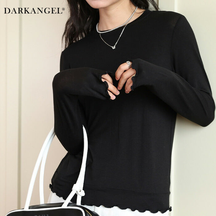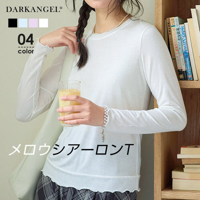 [関連ワード]シアートップス 長袖 薄手 レディース 春夏 ロングシーズン活躍する万能シアーロンT ダークエンジェル/darkangel ロング シースルー メロウ トップス おしゃれ 大人 オールシーズン 白 黒 無地 クルーネック 重ね着 【 メロウシアーロンT 】 ダークエンジェル