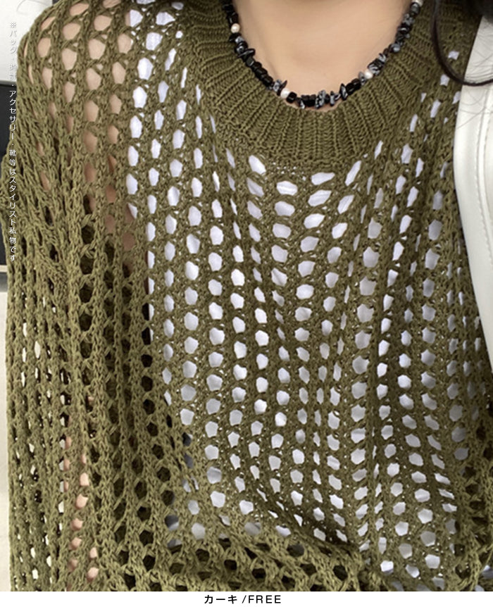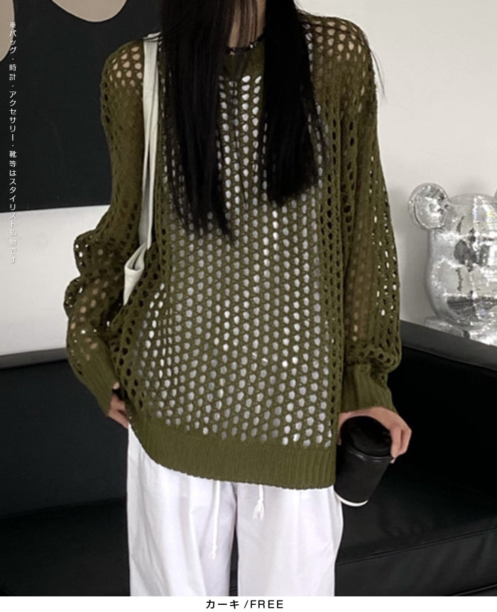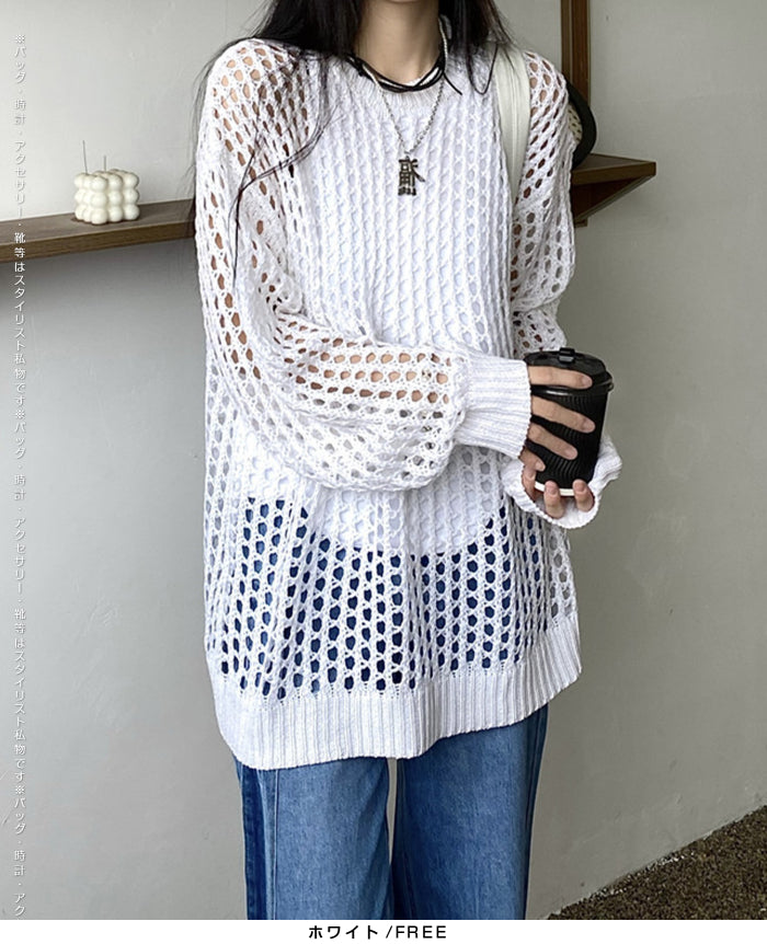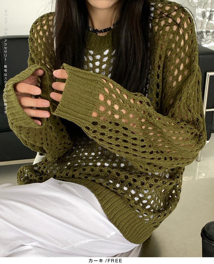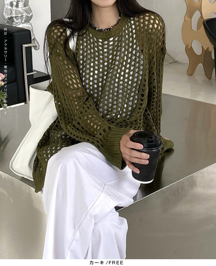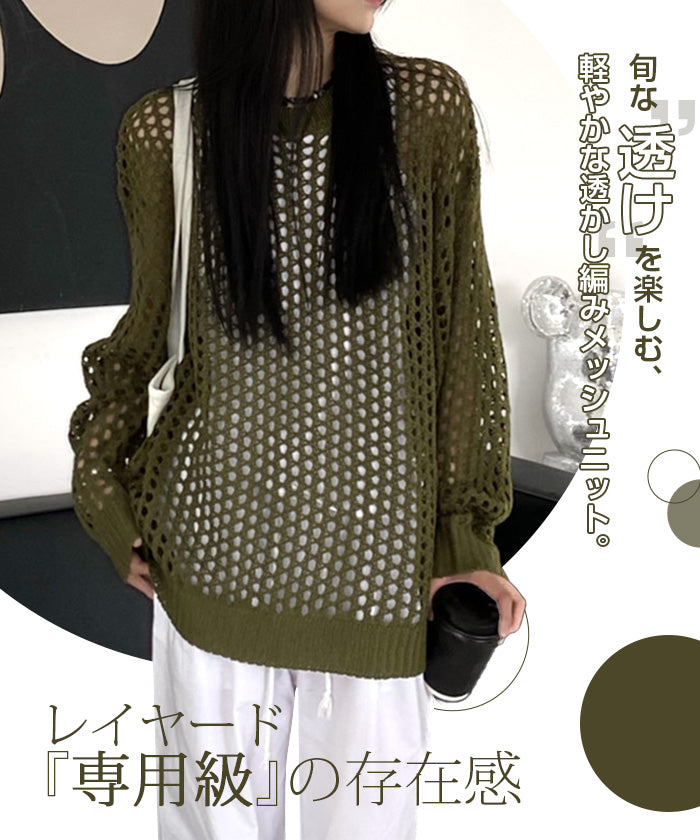 旬な“透け”を楽しむ、軽やかな透かし編みメッシュニット